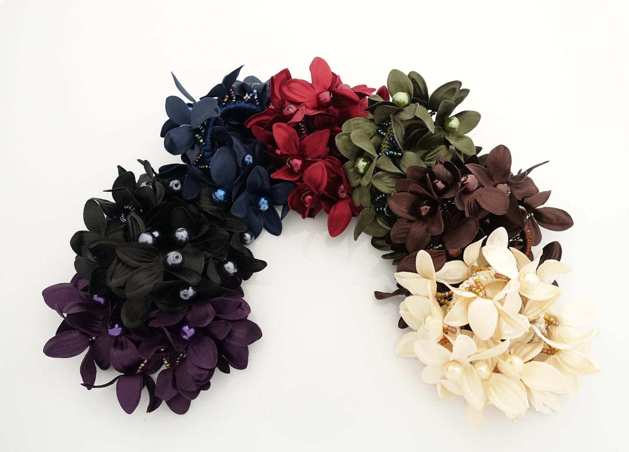 veryshine.com Ponytail holders Navy pearl flower beaded hair elastic ponytail holder decorated elastic band hair tie scrunchies woman hair accessory