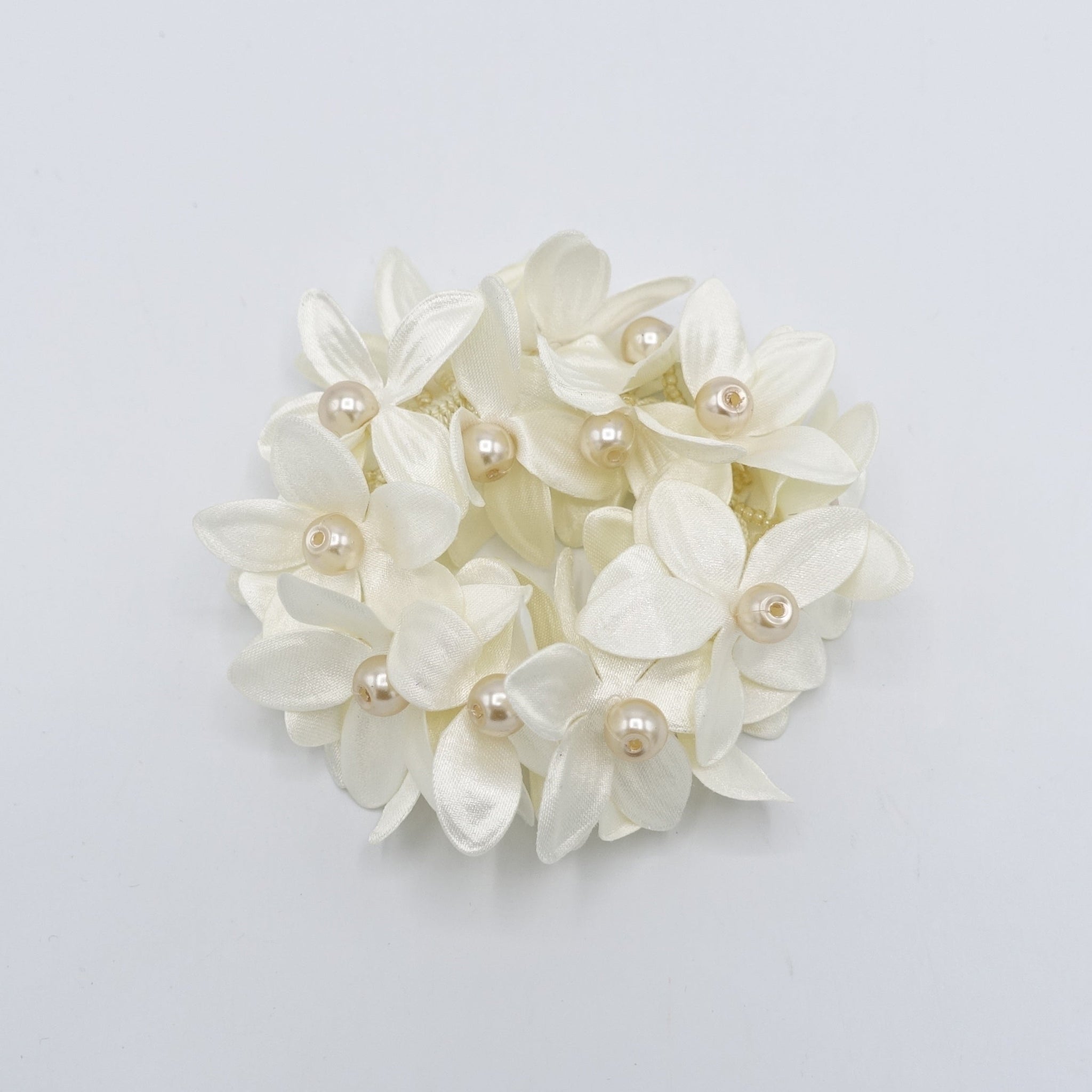 veryshine.com Ponytail holders Cream white pearl flower beaded hair elastic ponytail holder decorated elastic band hair tie scrunchies woman hair accessory