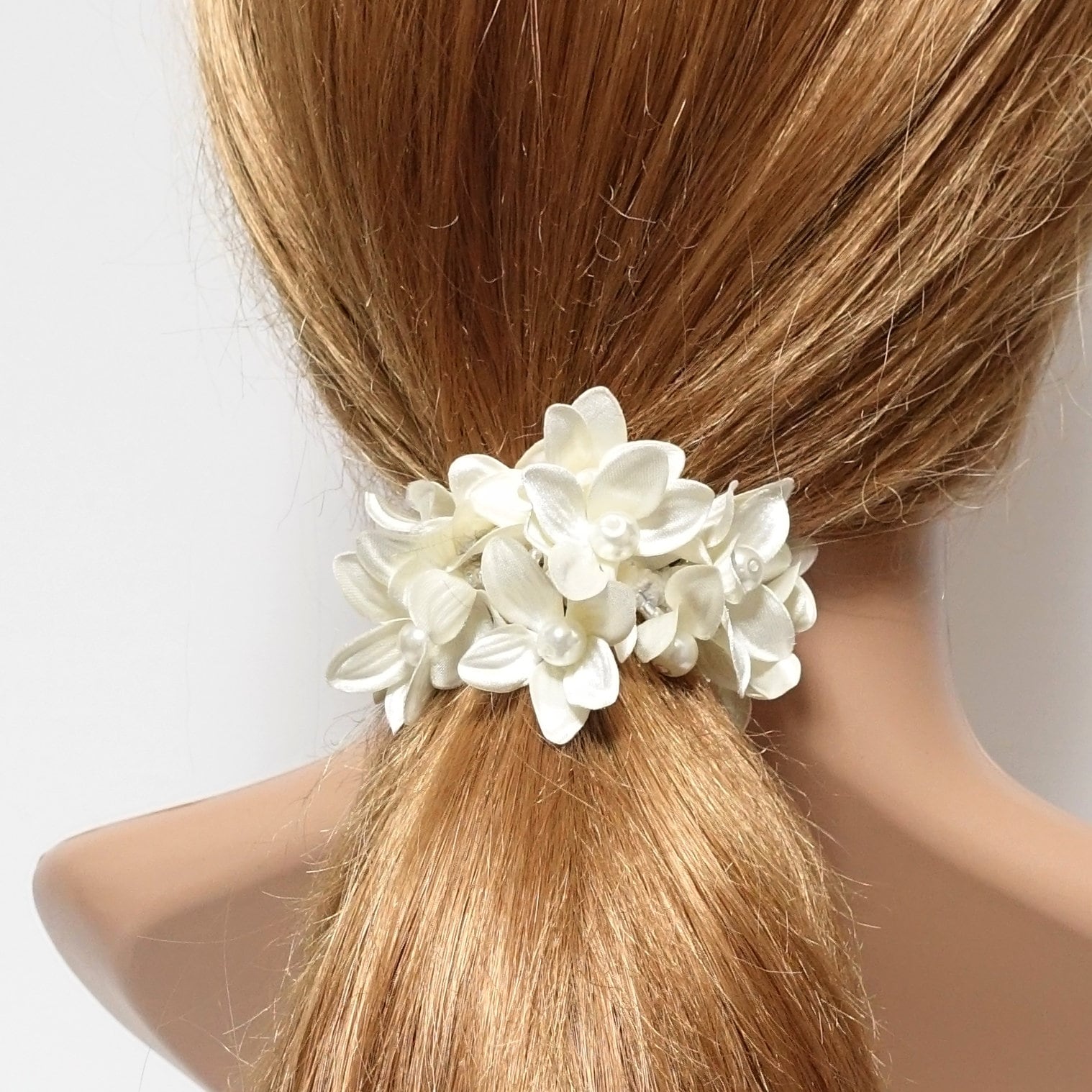 Pearl Flower Hair Tie: Beaded Ponytail Holder – veryshine.com
