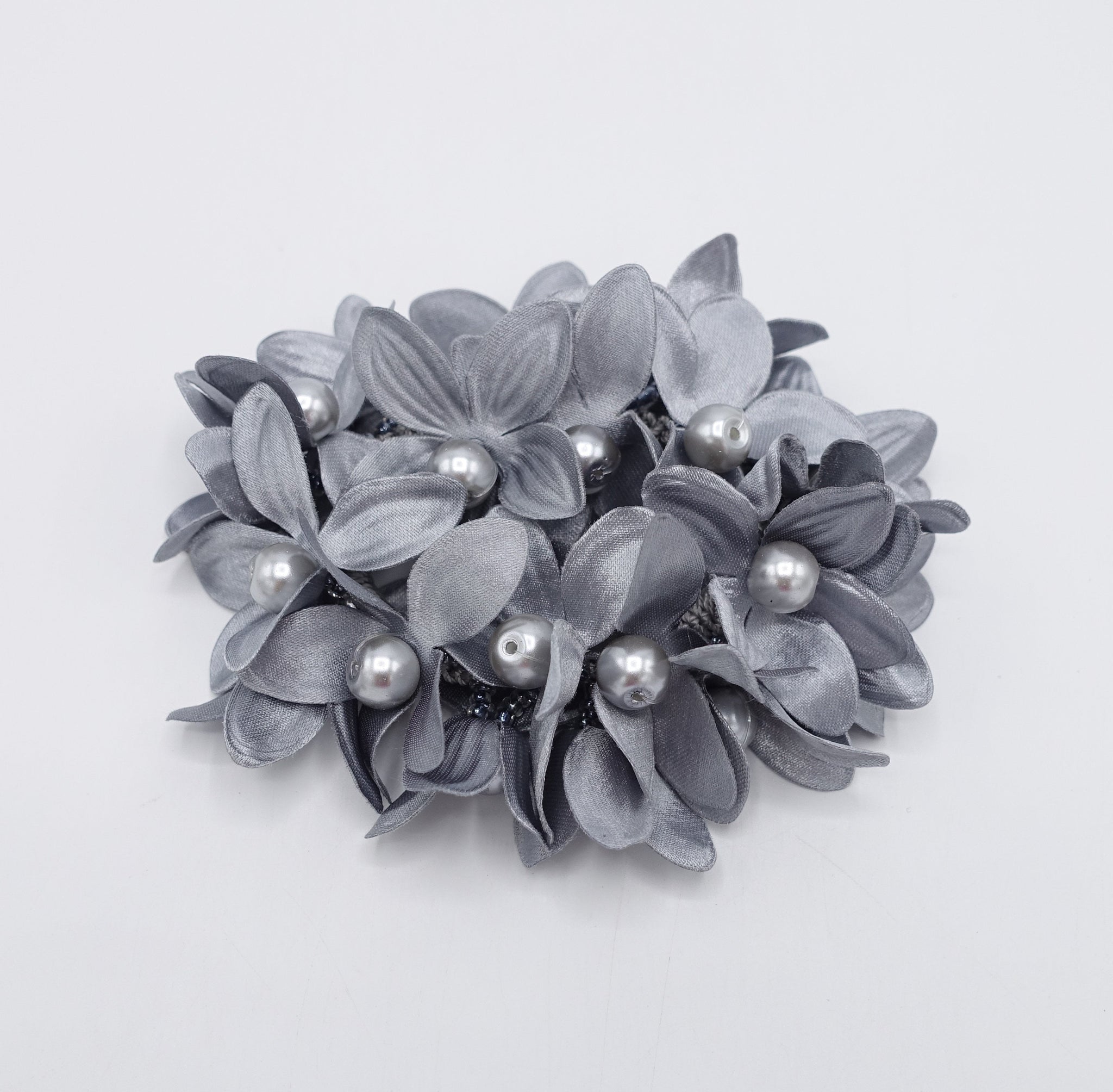 veryshine.com Ponytail holders Gray pearl flower beaded hair elastic ponytail holder decorated elastic band hair tie scrunchies woman hair accessory