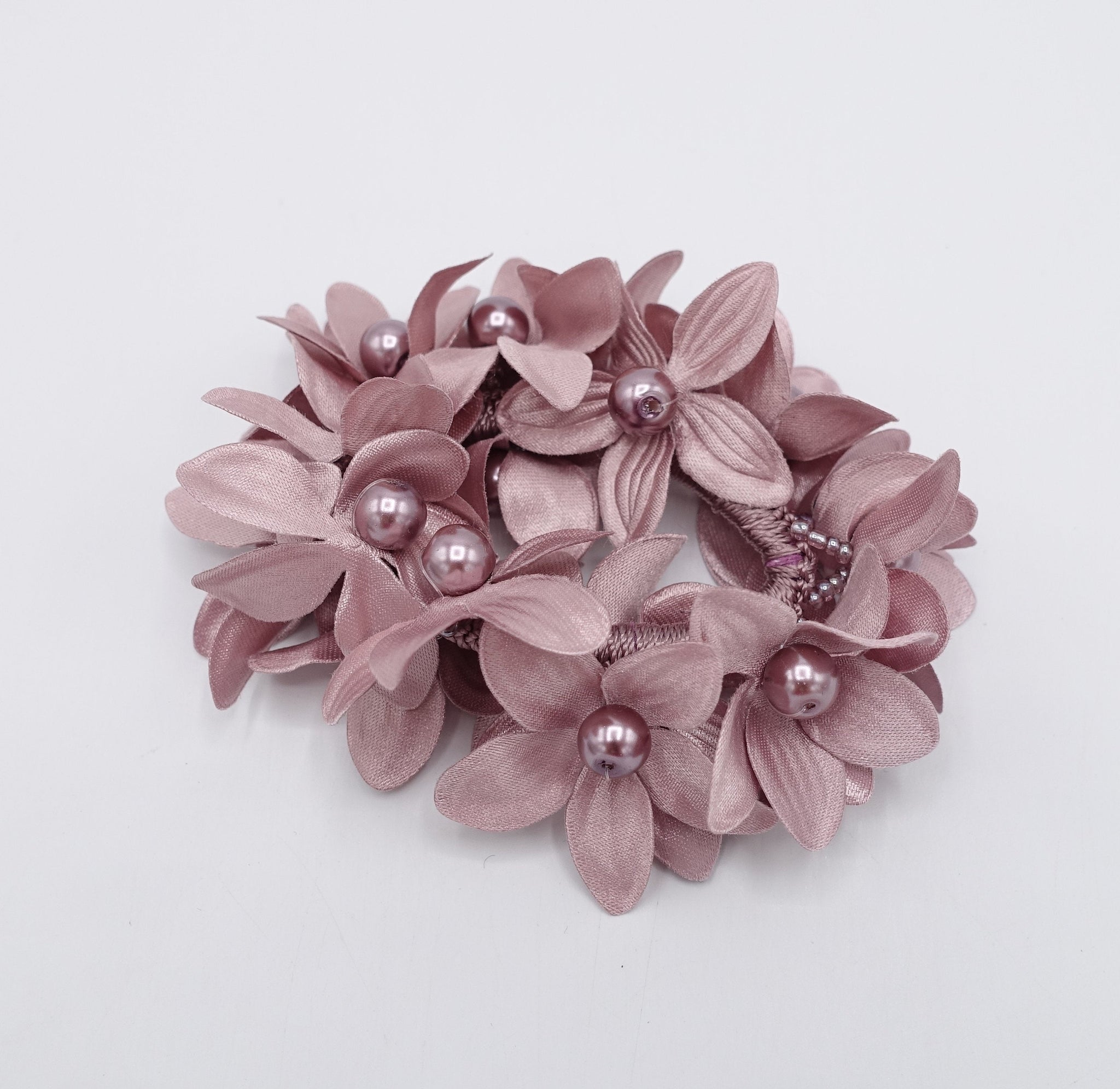 veryshine.com Ponytail holders Mauve pink pearl flower beaded hair elastic ponytail holder decorated elastic band hair tie scrunchies woman hair accessory