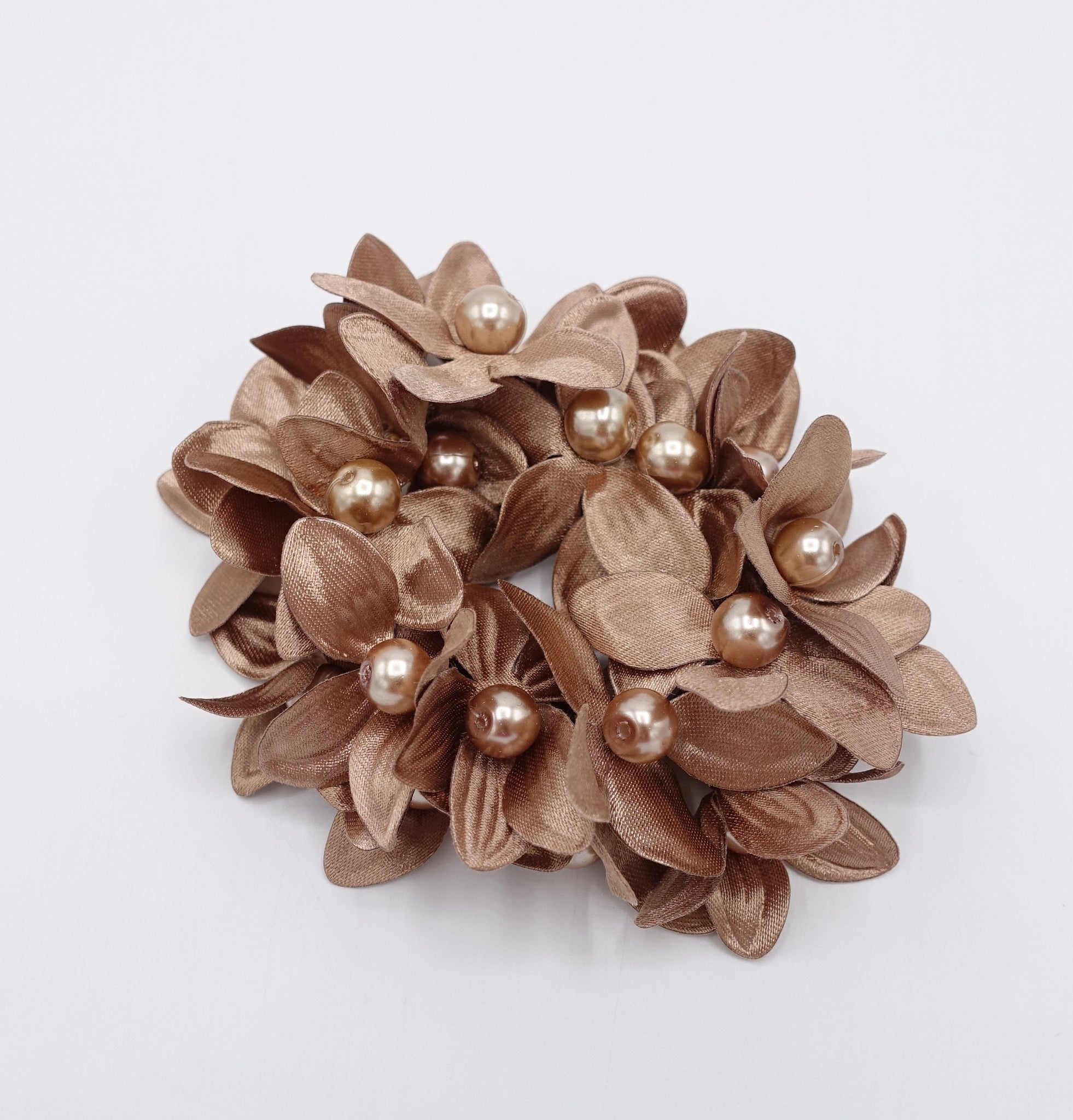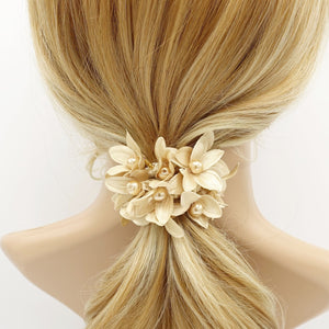 veryshine.com Ponytail holders Tan pearl flower beaded hair elastic ponytail holder decorated elastic band hair tie scrunchies woman hair accessory