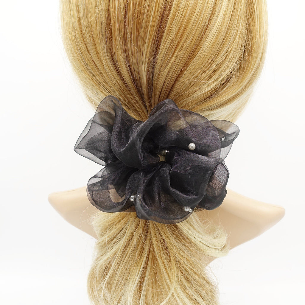 veryshine.com Ponytail holders Black pearl flower beaded hair elastic ponytail holder decorated elastic band hair tie scrunchies woman hair accessory