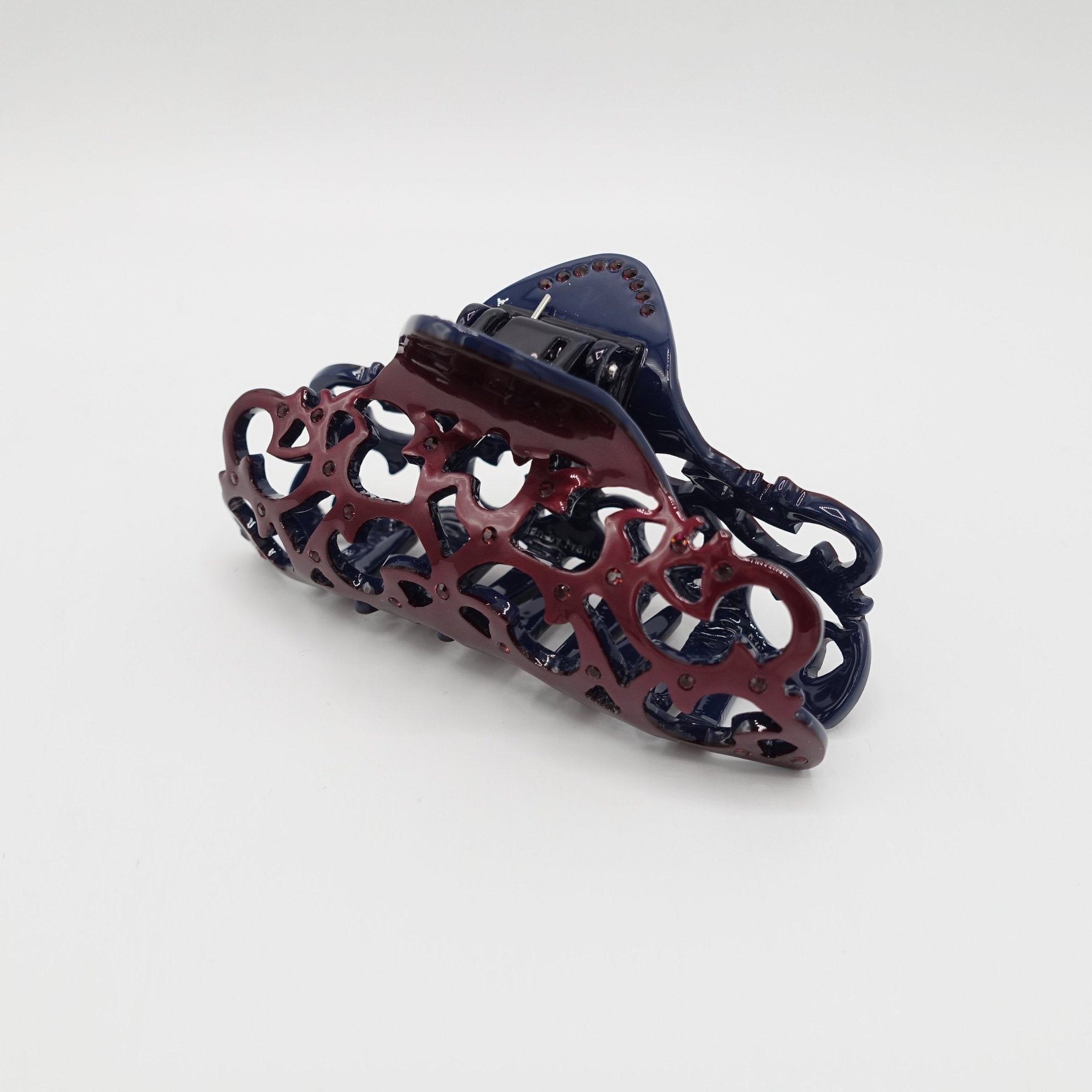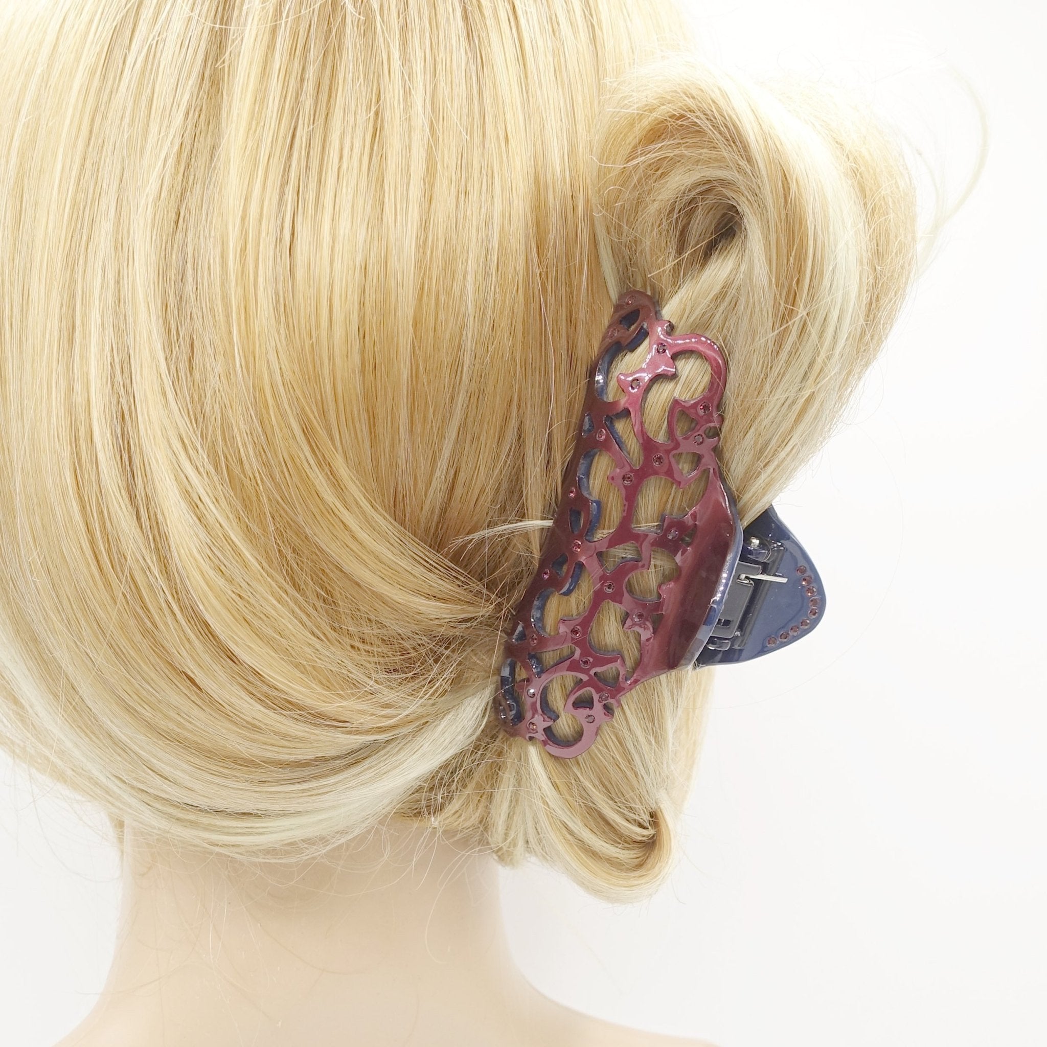 veryshine.com claw/banana/barrette Large burgundy cellulose acetate hair claw open work pattern rhinestone embellished hair clamp for women