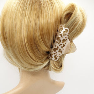 veryshine.com claw/banana/barrette Large beige cellulose acetate hair claw open work pattern rhinestone embellished hair clamp for women
