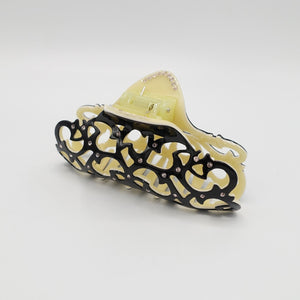 veryshine.com claw/banana/barrette Large black cellulose acetate hair claw open work pattern rhinestone embellished hair clamp for women