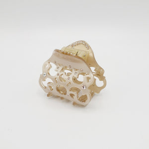 veryshine.com claw/banana/barrette Small beige cellulose acetate hair claw open work pattern rhinestone embellished hair clamp for women