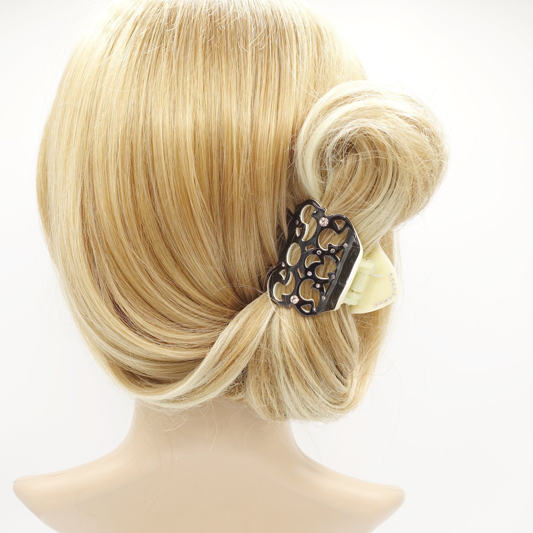 veryshine.com claw/banana/barrette Small black cellulose acetate hair claw open work pattern rhinestone embellished hair clamp for women