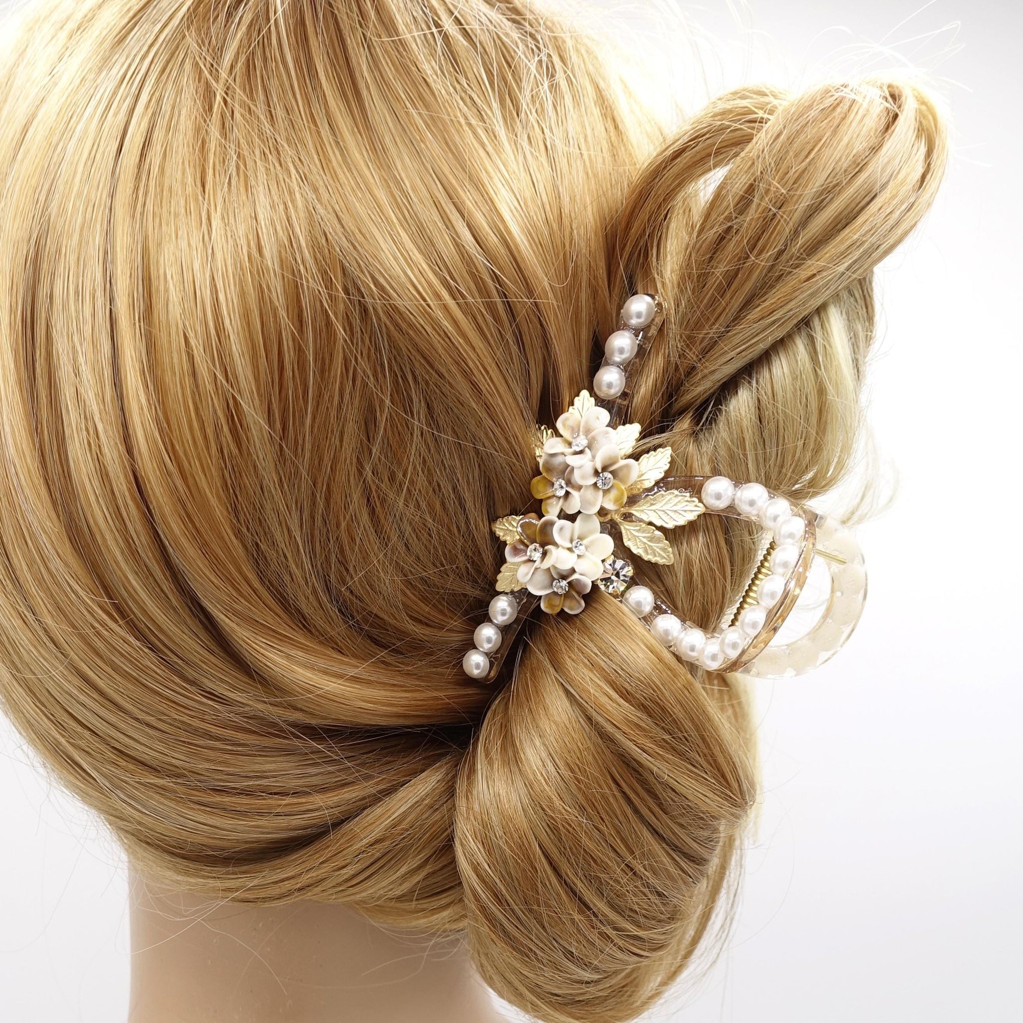 Pearl Hair Claw: Floral Golden Leaf Hair Clip – veryshine.com