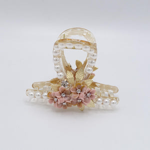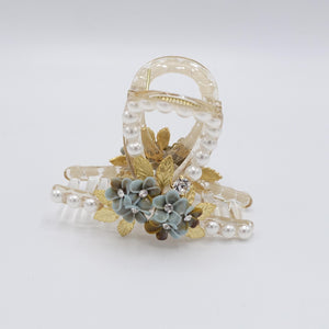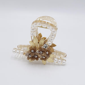 Pearl Hair Claw: Floral Golden Leaf Hair Clip