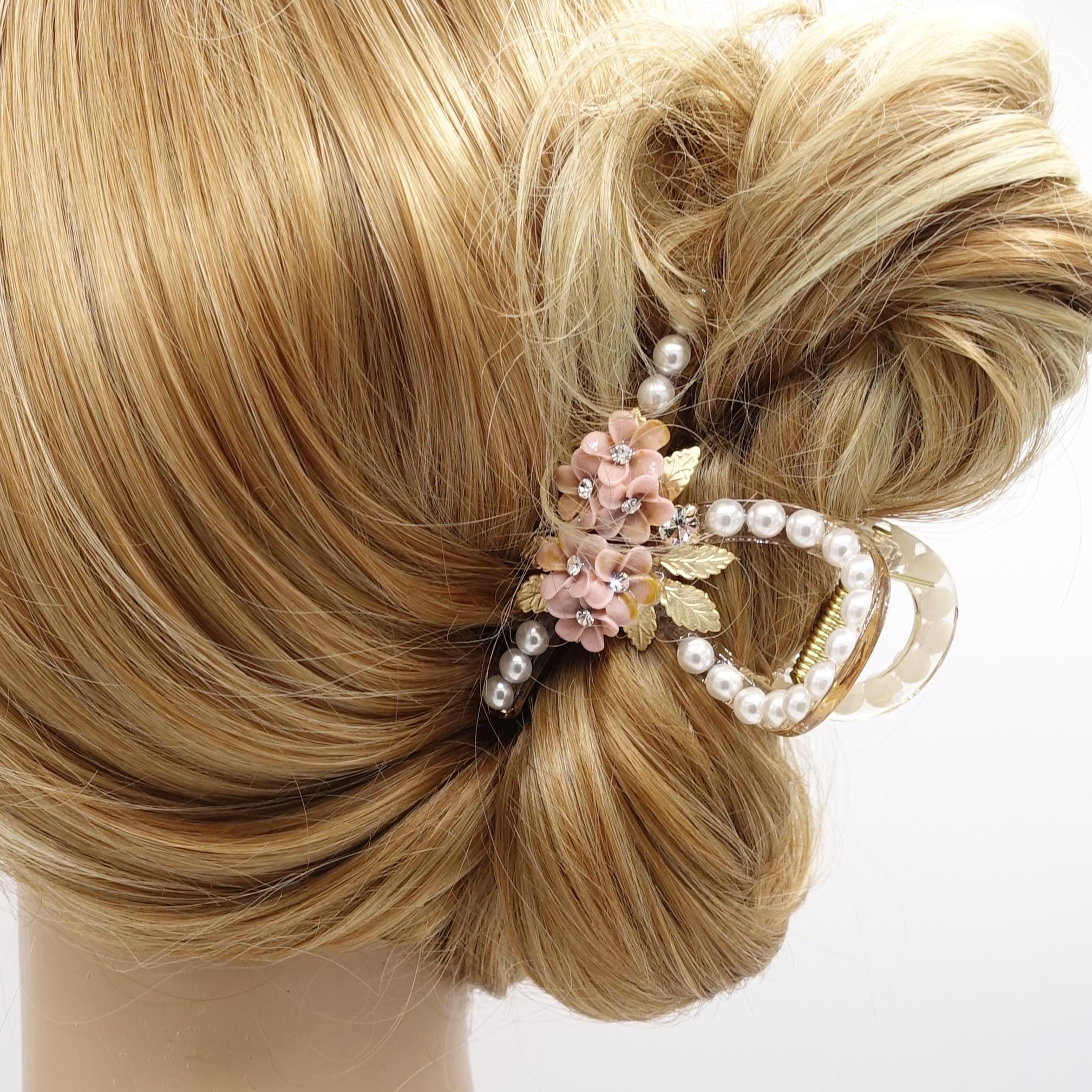 veryshine.com Hair Claw Pink decorative hair claw, pearl hair claw, cute hair claw for women