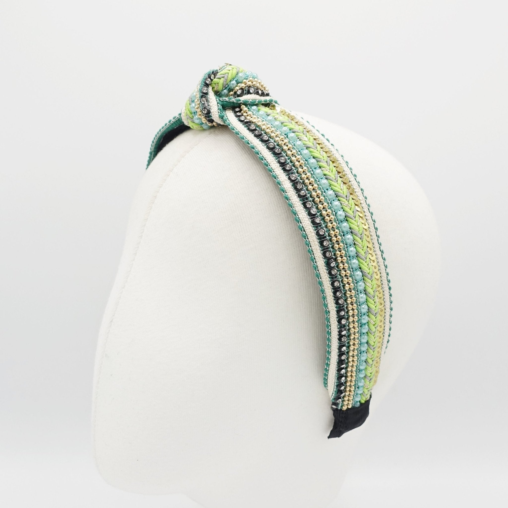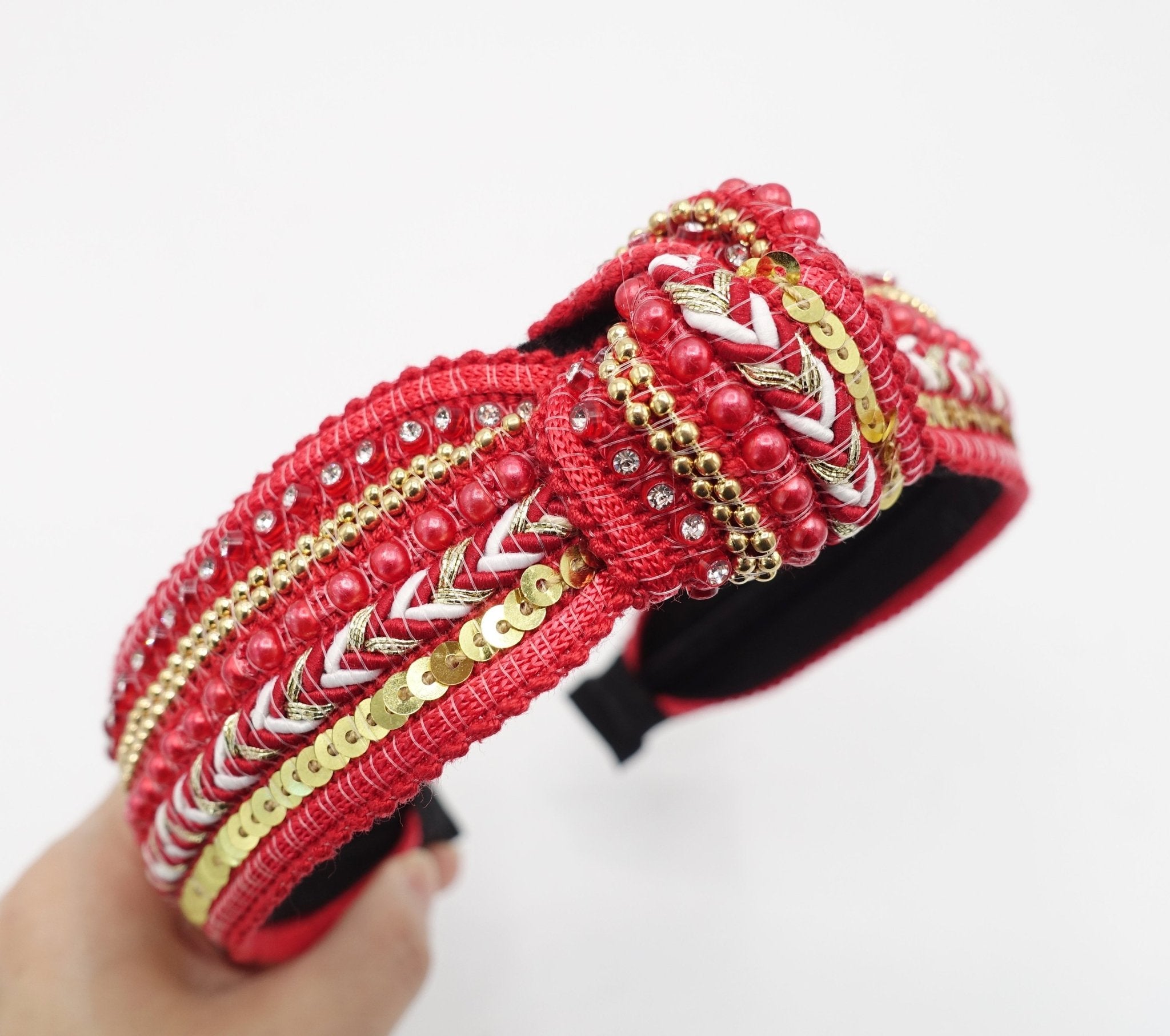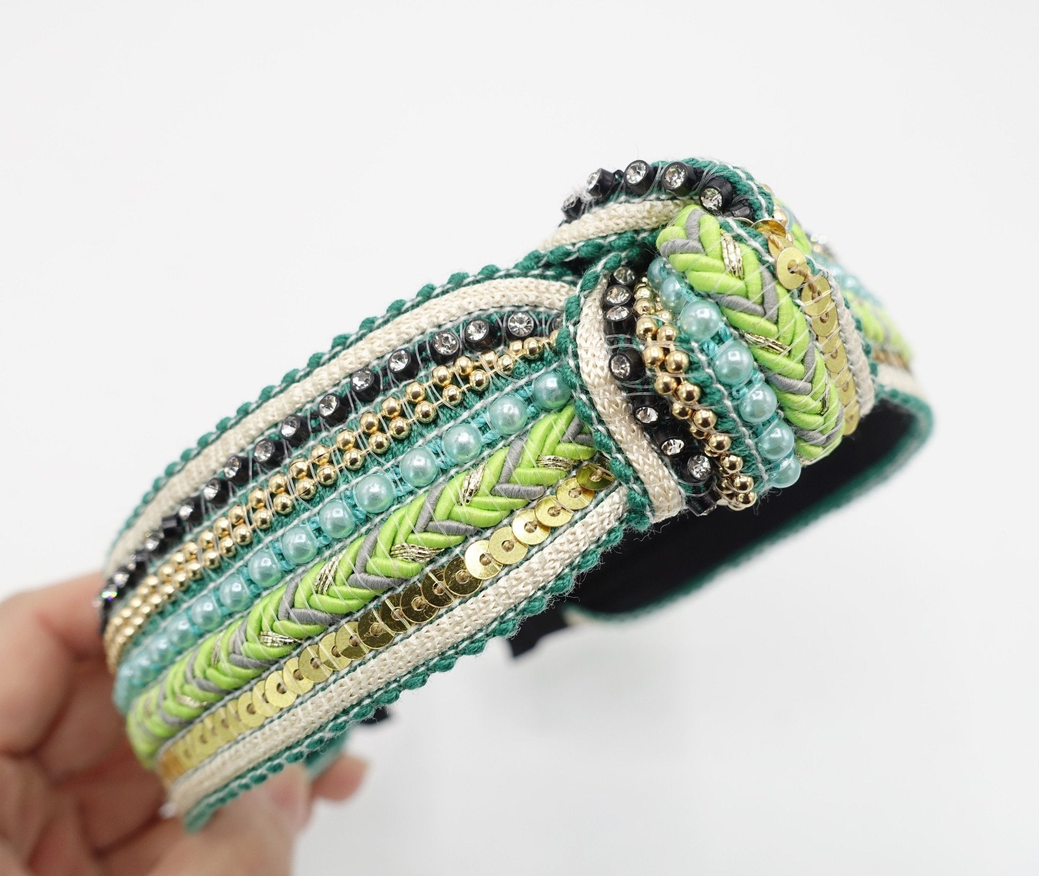 VeryShine embellished top knot headband sequin pearl rhinestone decorated hairband
