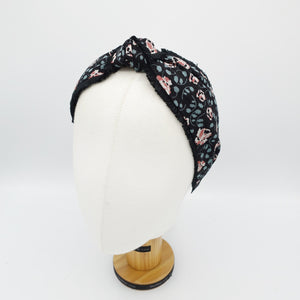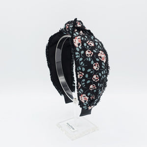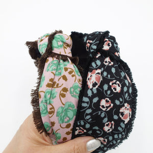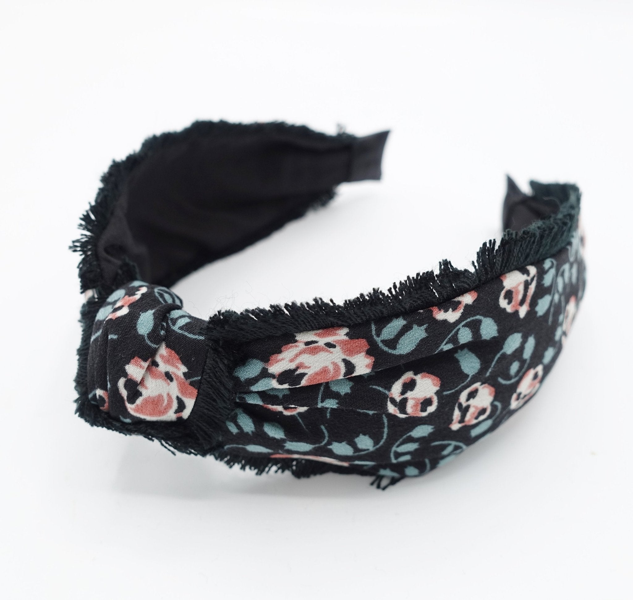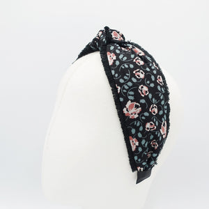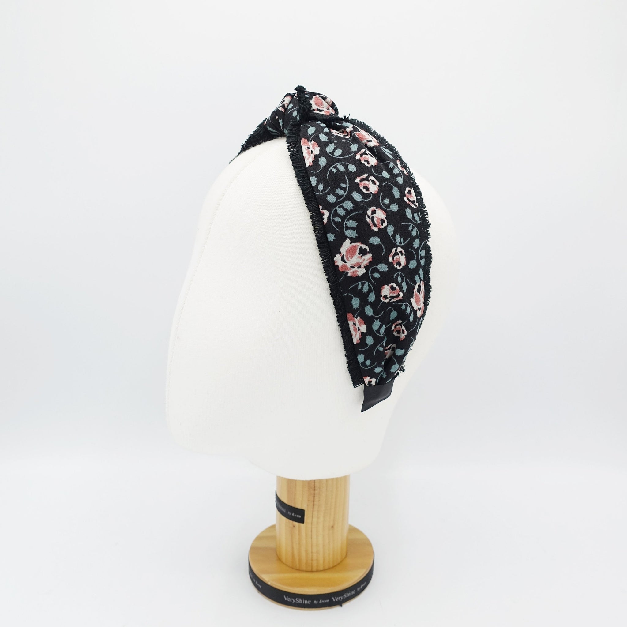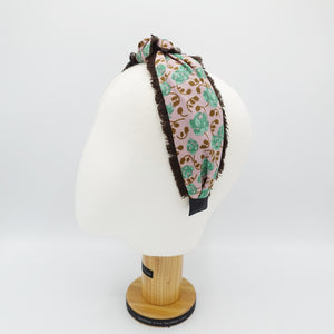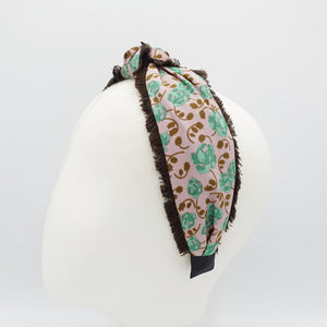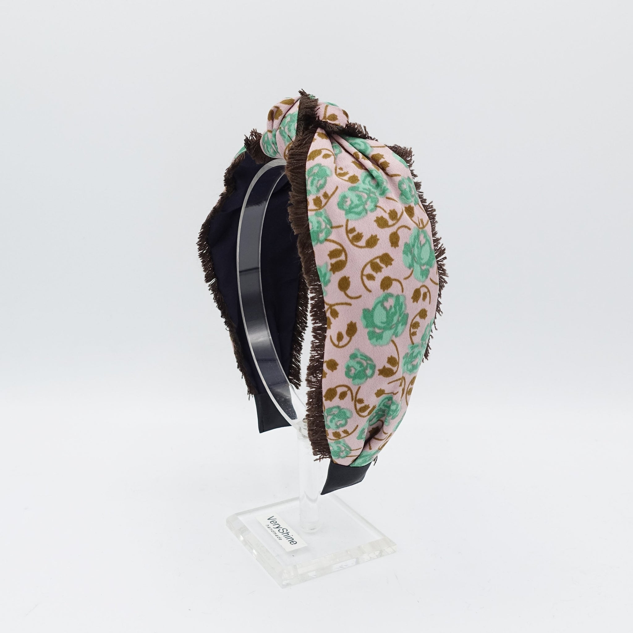 fringe trim headband flower stem print hairband top knot hair accessory for women - veryshine.com