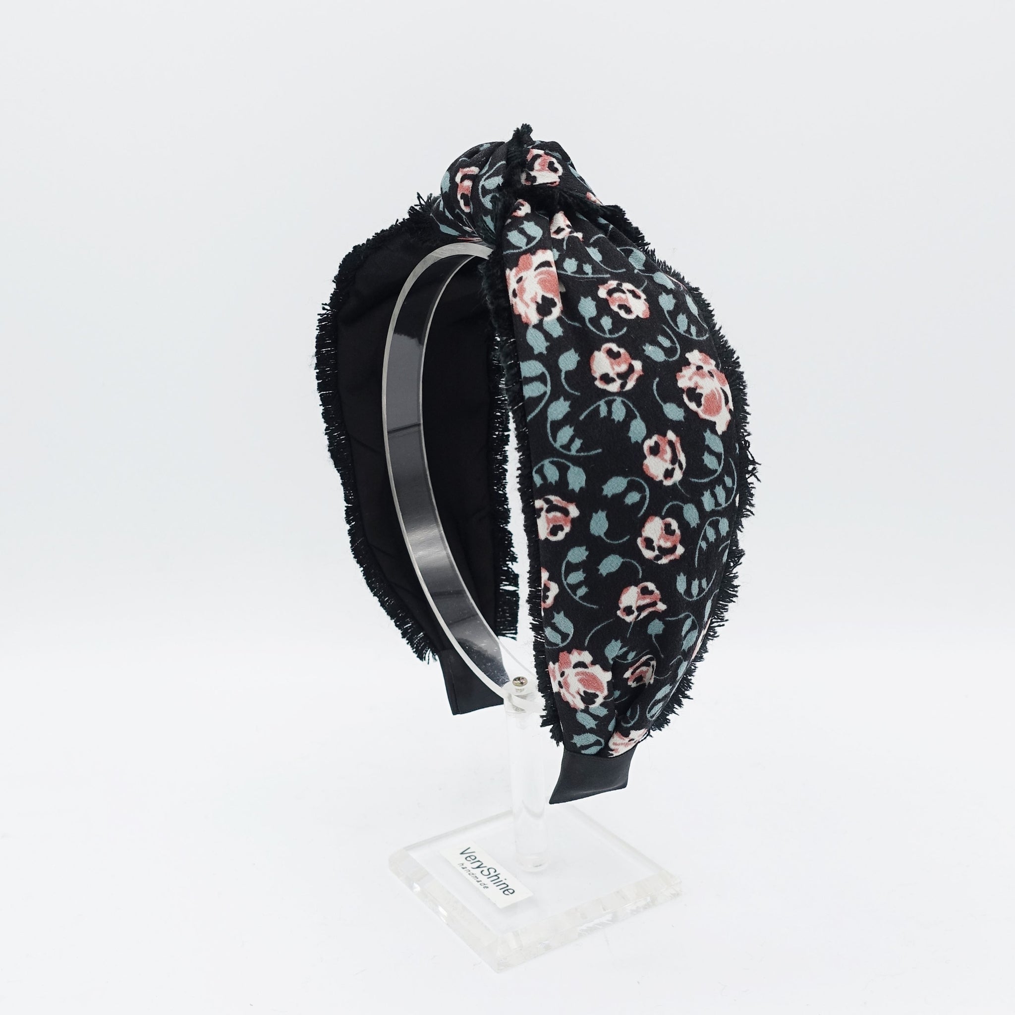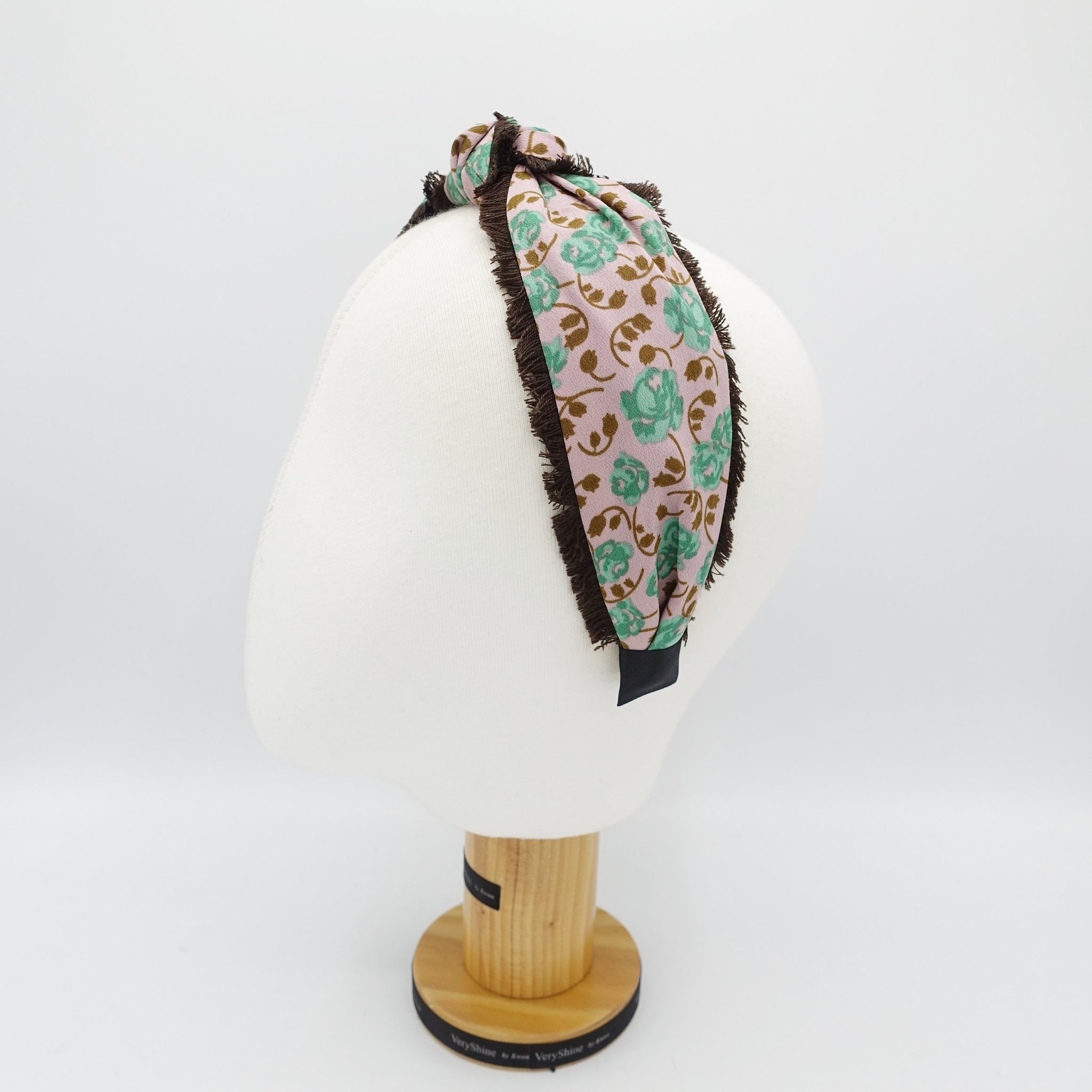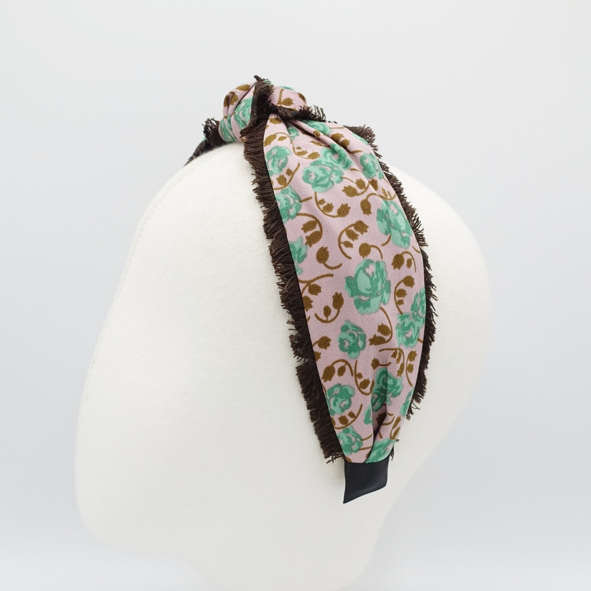 VeryShine fringe trim headband flower stem print hairband top knot hair accessory for women