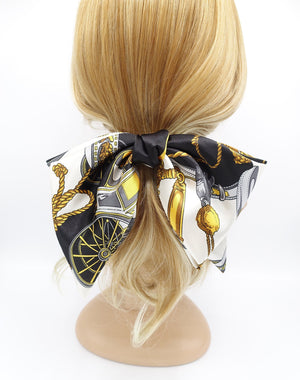veryshine.com Barrette (Bow) Black satin hair bow scarf carriage wheel rope print hair accessory for women