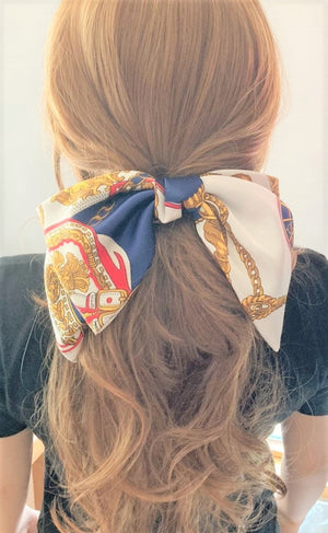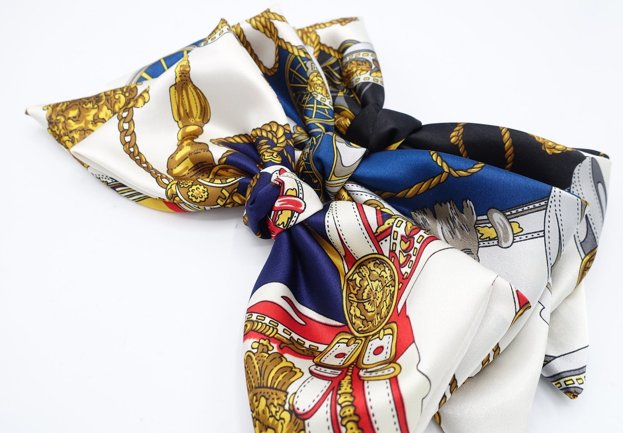 veryshine.com Barrette (Bow) Navy satin hair bow scarf carriage wheel rope print hair accessory for women