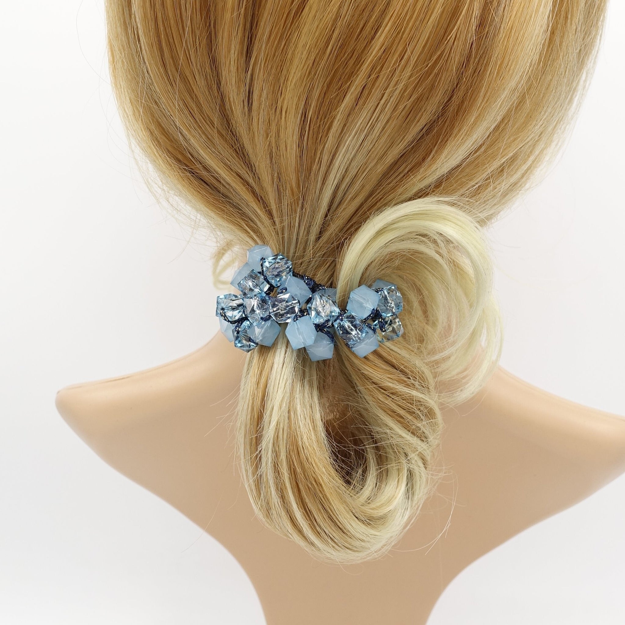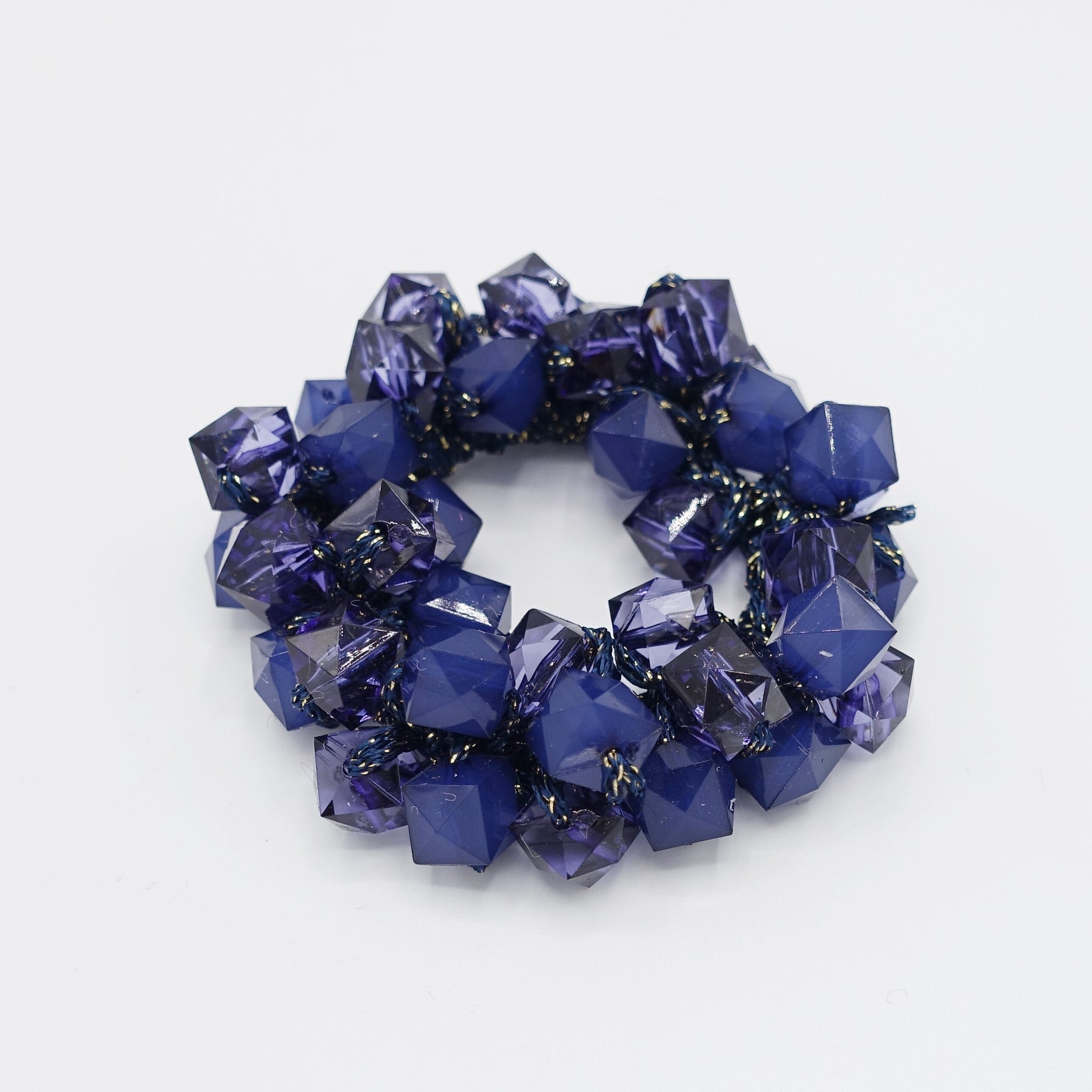 veryshine.com Ponytail holders Navy acrylic polyhedron beaded hair elastic ponytail holder women hair accessories
