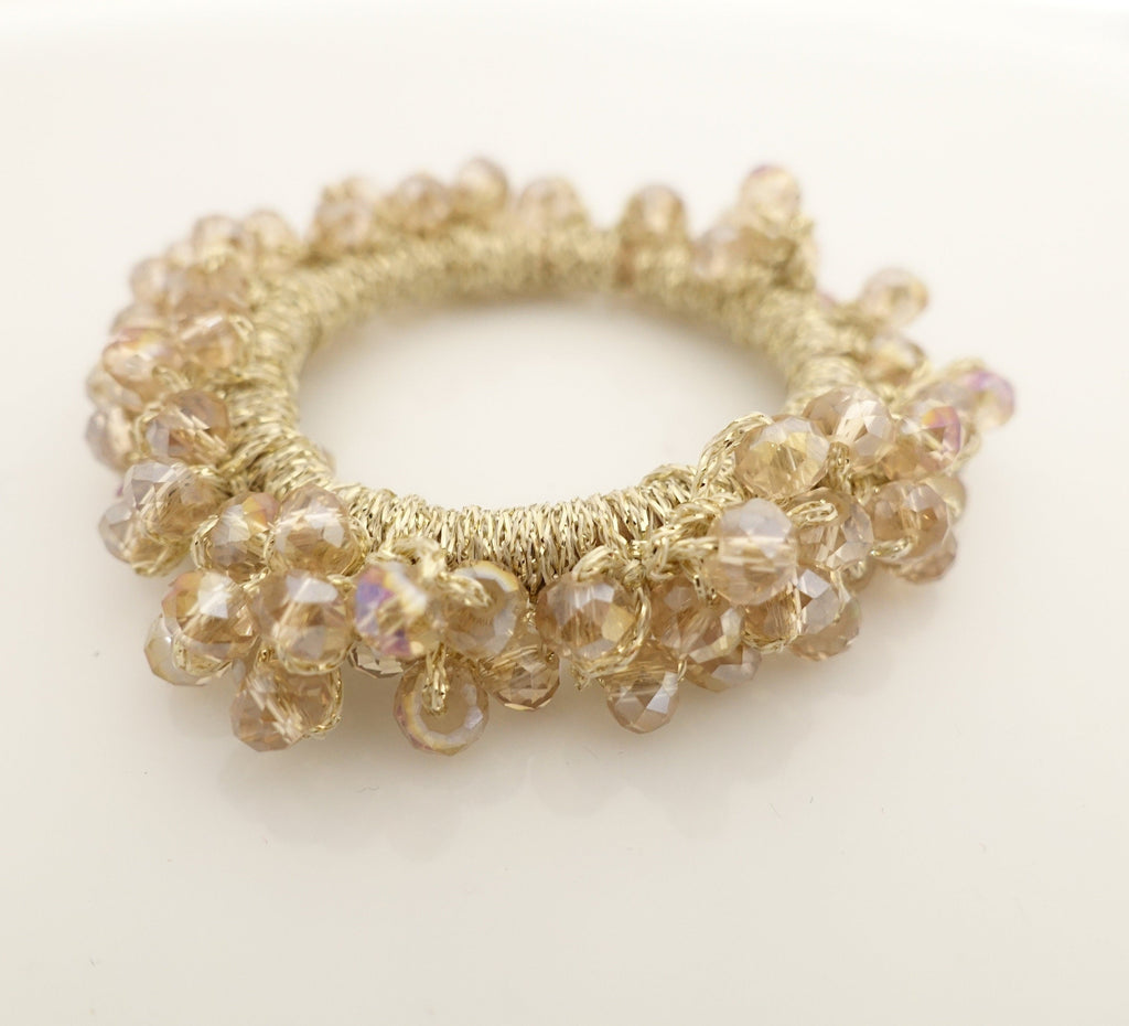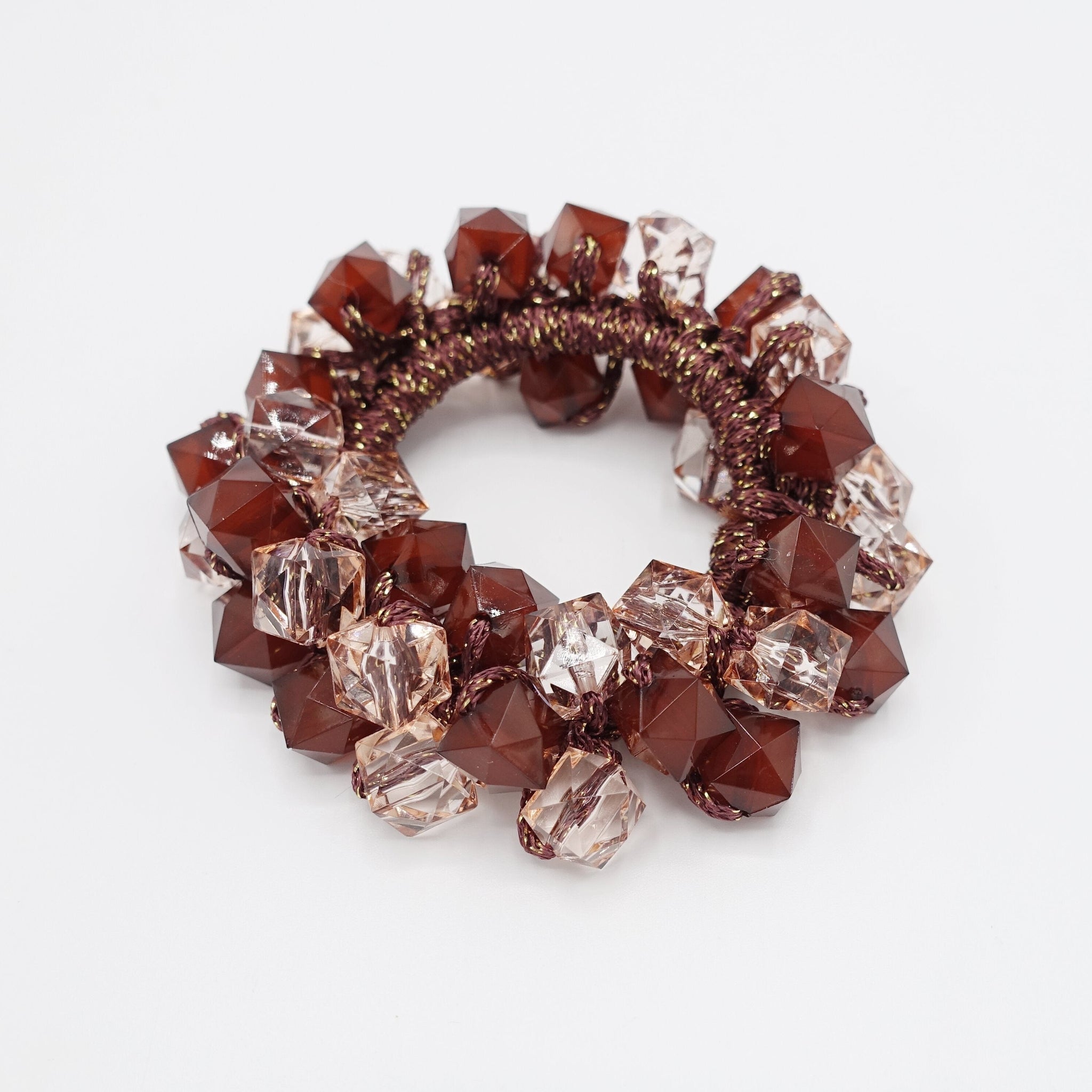 veryshine.com Ponytail holders Brown acrylic polyhedron beaded hair elastic ponytail holder women hair accessories