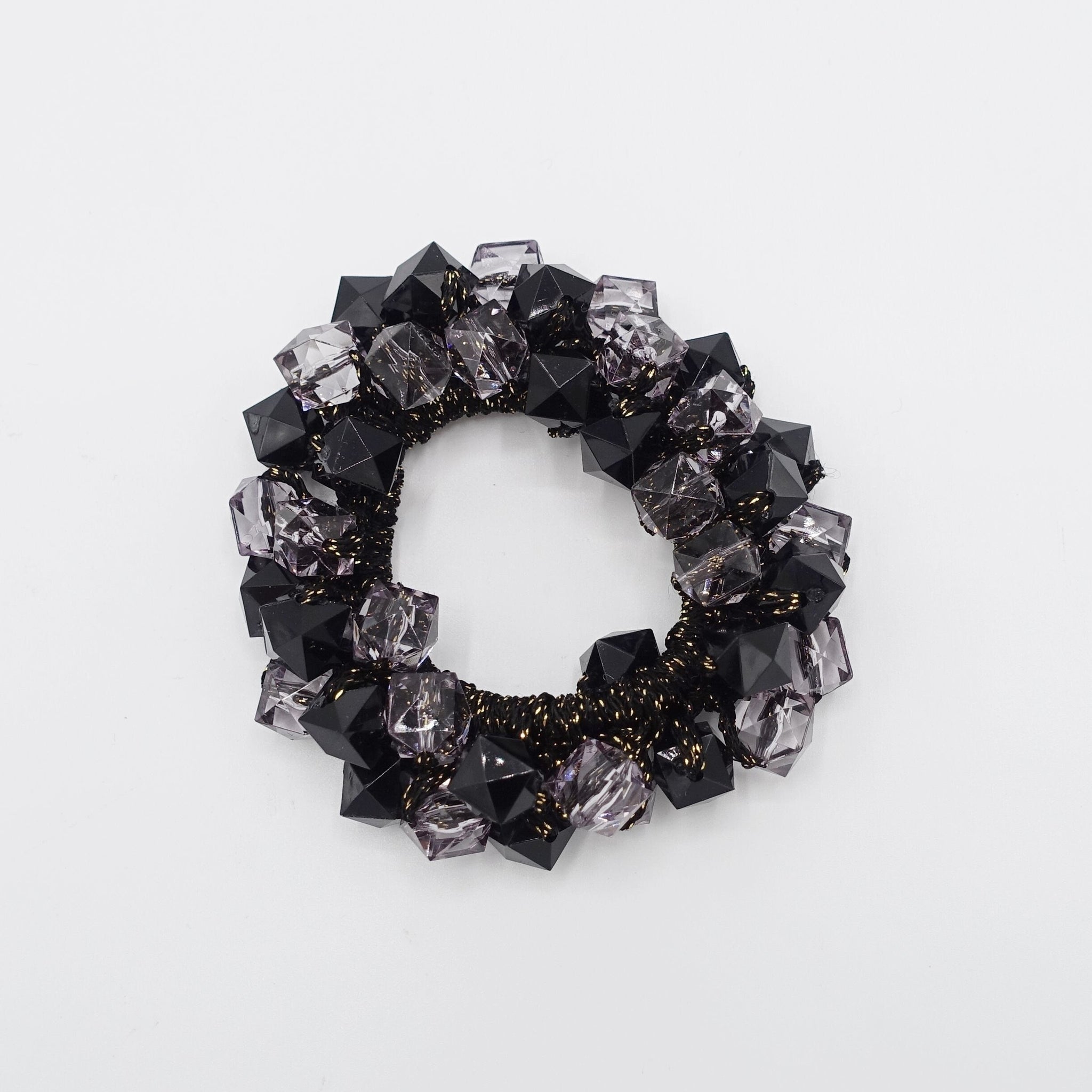 veryshine.com Ponytail holders Black acrylic polyhedron beaded hair elastic ponytail holder women hair accessories