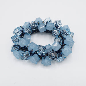 veryshine.com Ponytail holders Blue green acrylic polyhedron beaded hair elastic ponytail holder women hair accessories
