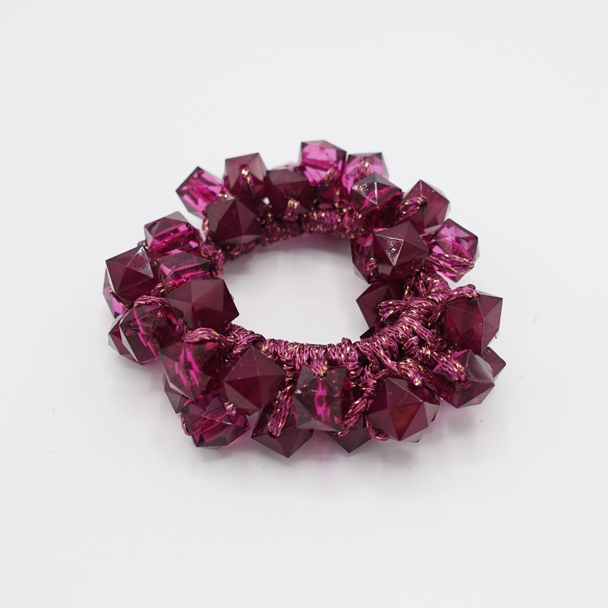 veryshine.com Ponytail holders Red wine acrylic polyhedron beaded hair elastic ponytail holder women hair accessories