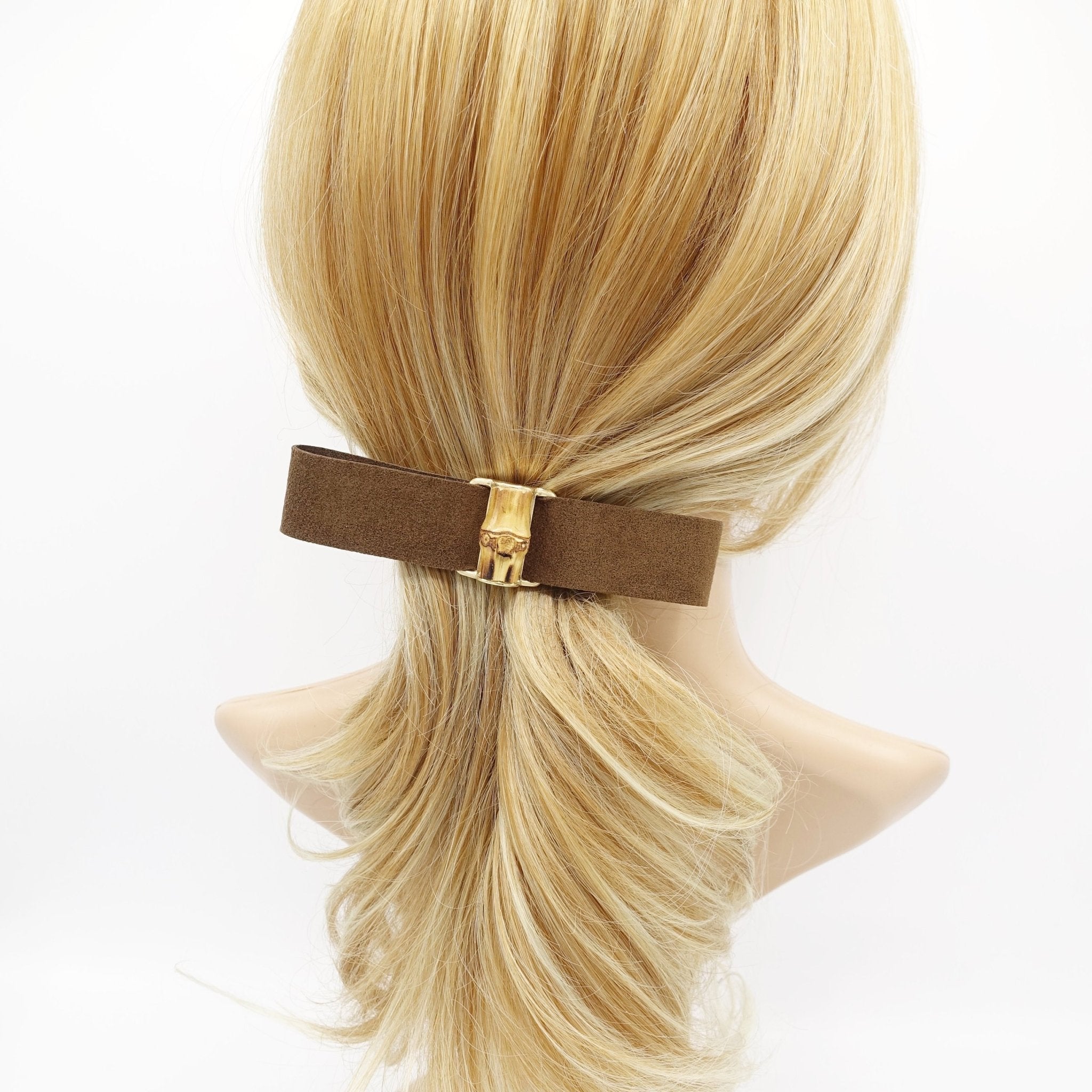 VeryShine claw/banana/barrette Brown bamboo buckle embellished suede hair bow barrette luxury hair accessory for women