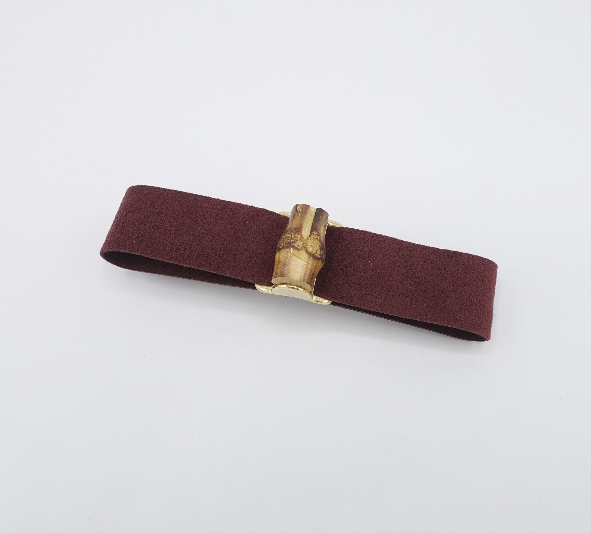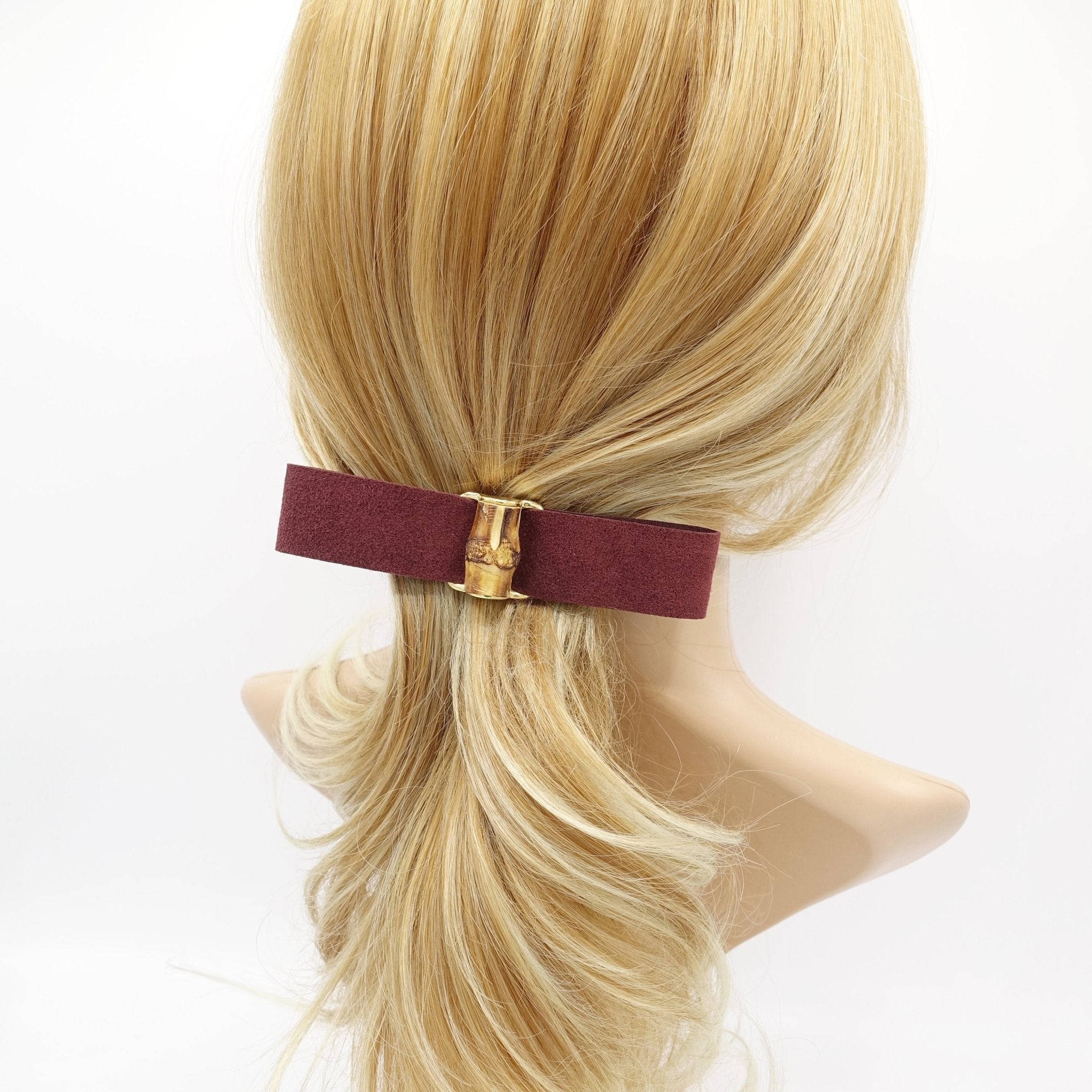 VeryShine claw/banana/barrette Red wine bamboo buckle embellished suede hair bow barrette luxury hair accessory for women