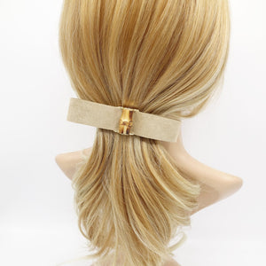 VeryShine claw/banana/barrette Beige bamboo buckle embellished suede hair bow barrette luxury hair accessory for women