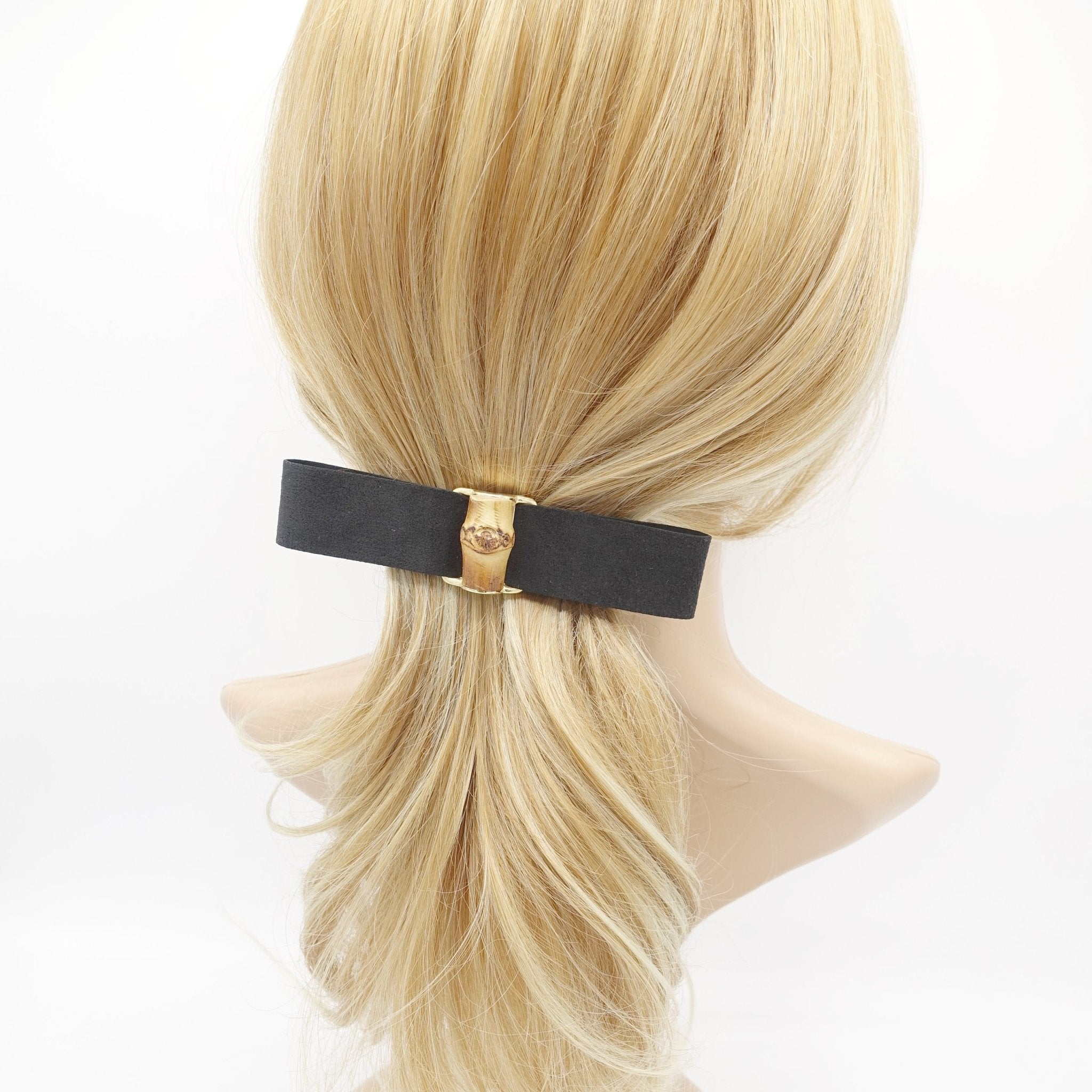 VeryShine claw/banana/barrette bamboo buckle embellished suede hair bow barrette luxury hair accessory for women