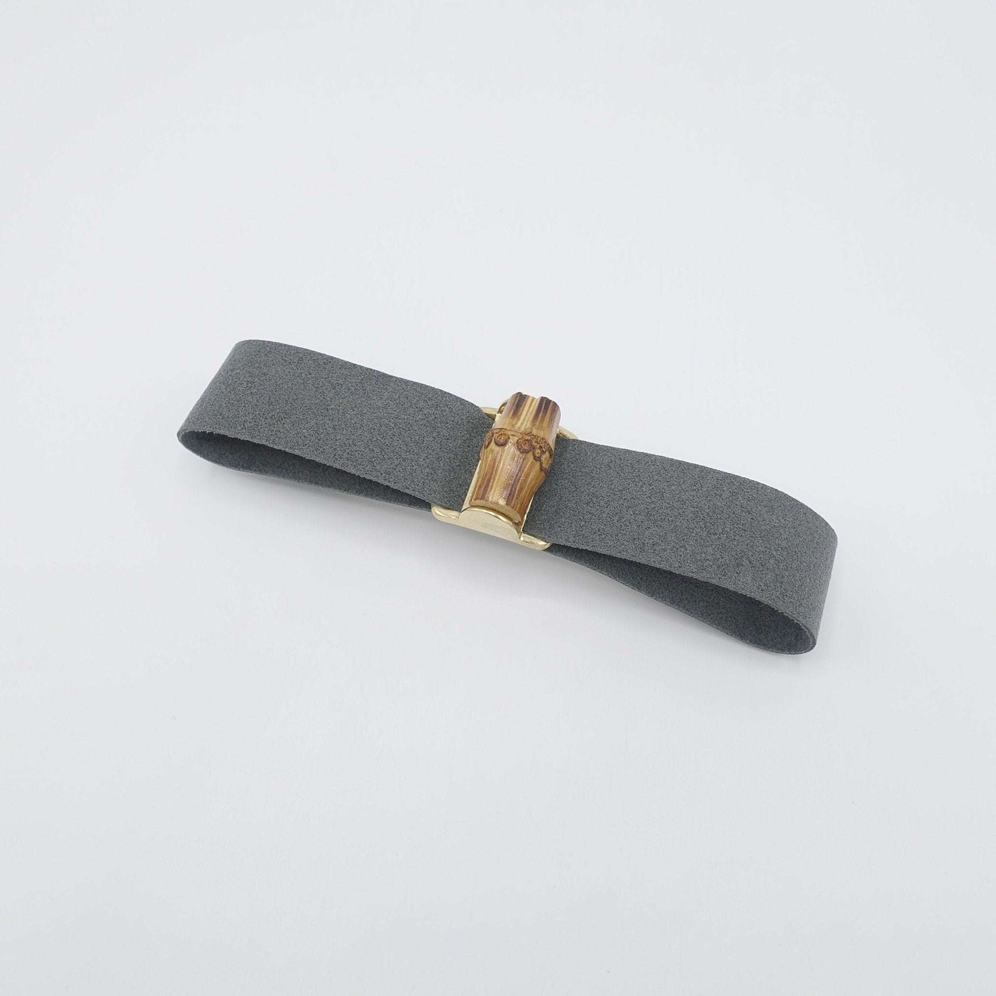 VeryShine claw/banana/barrette Gray bamboo buckle embellished suede hair bow barrette luxury hair accessory for women