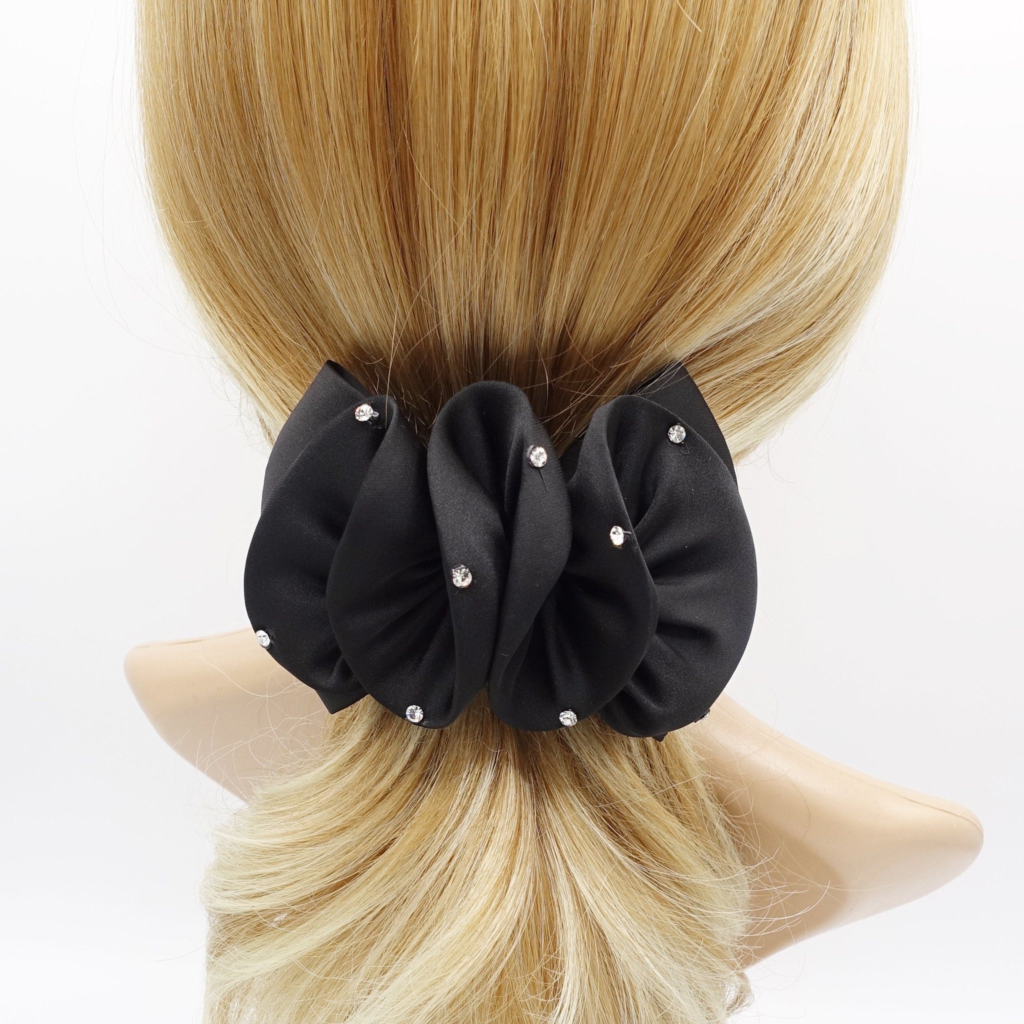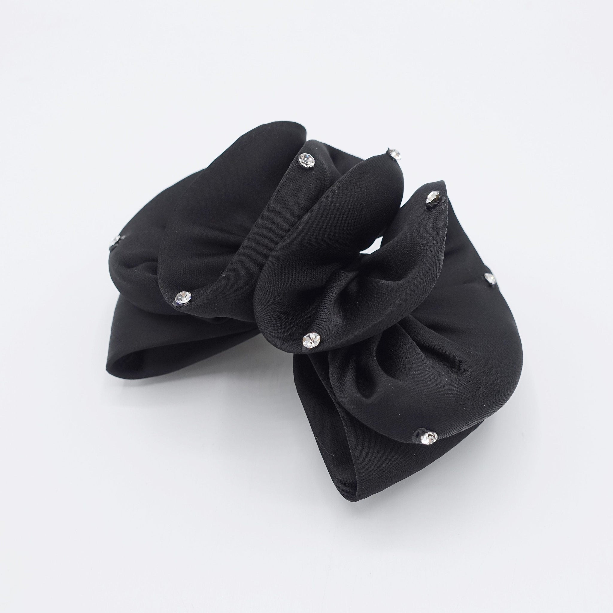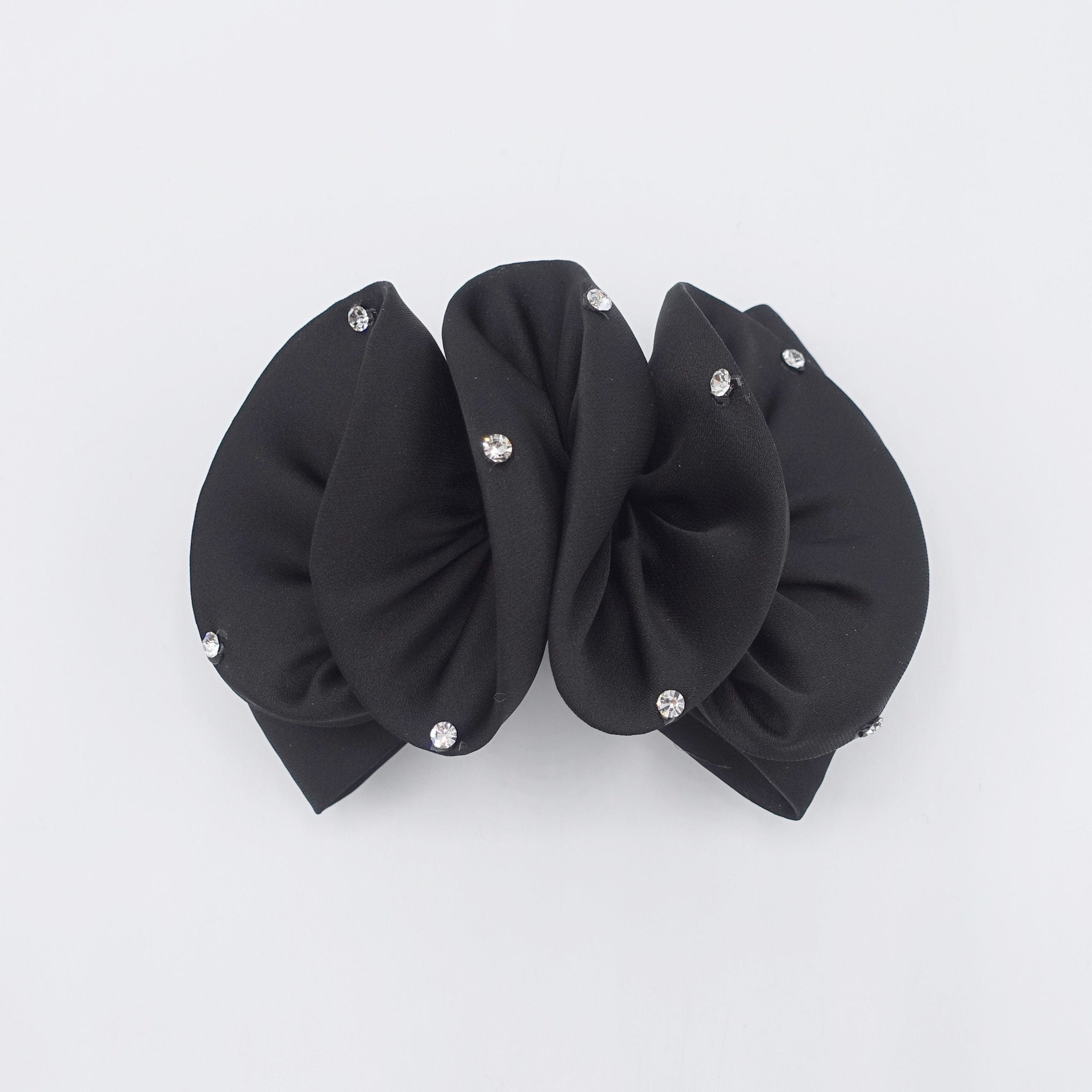 veryshine.com Barrette (Bow) Rhinestone black satin wave hair bow for women