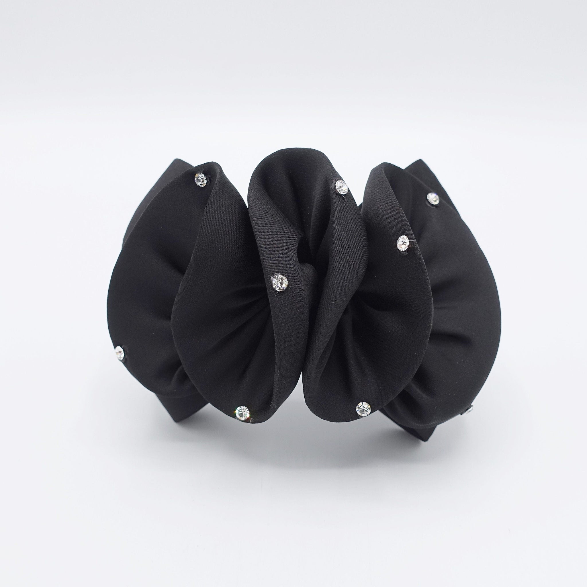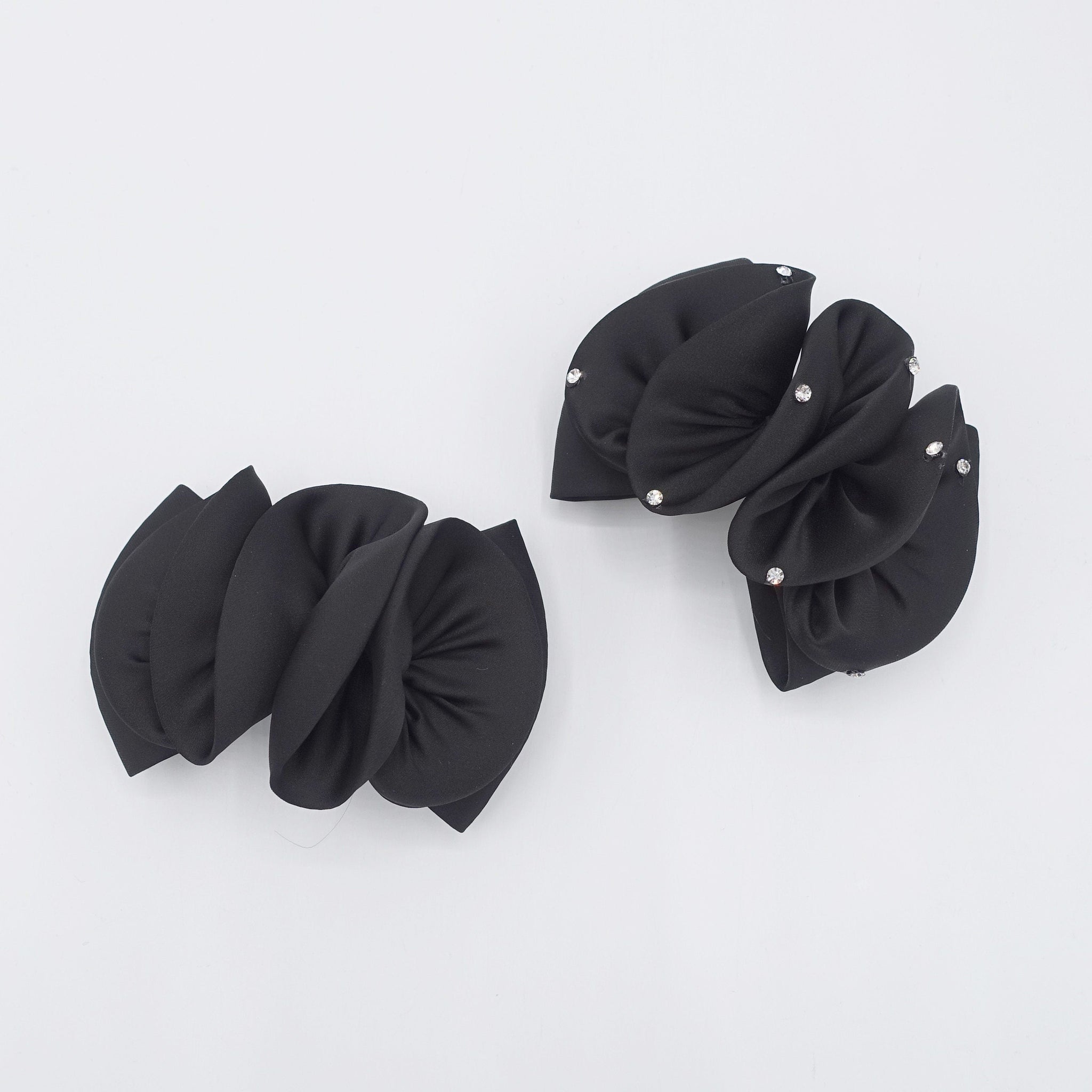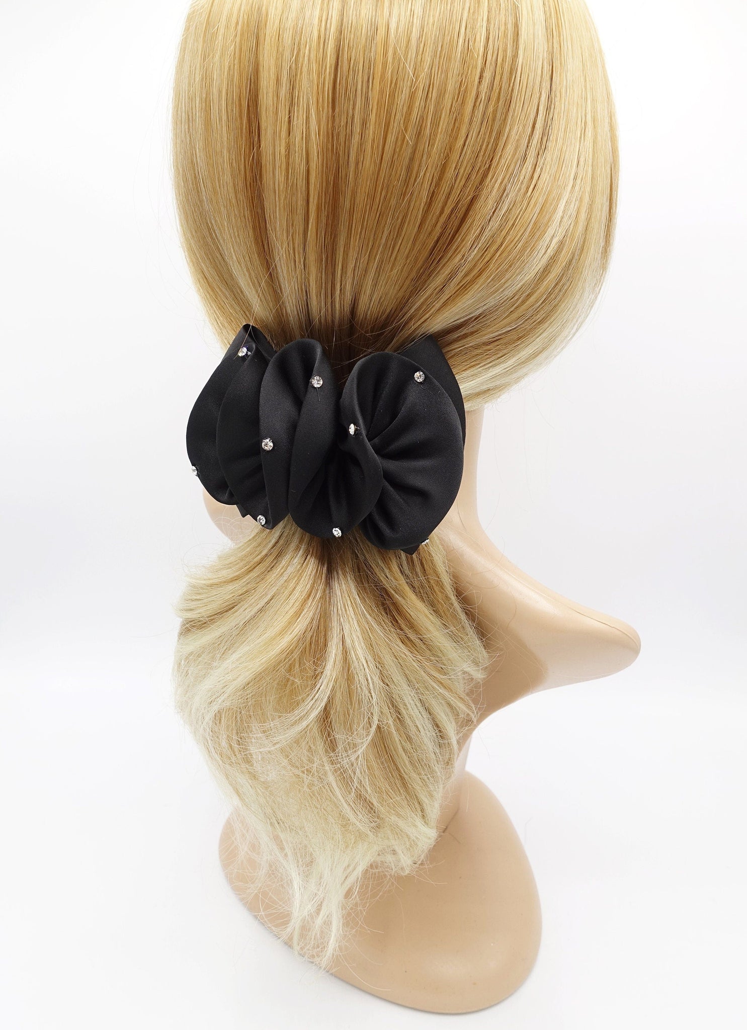 veryshine.com Barrette (Bow) Rhinestone black satin wave hair bow for women