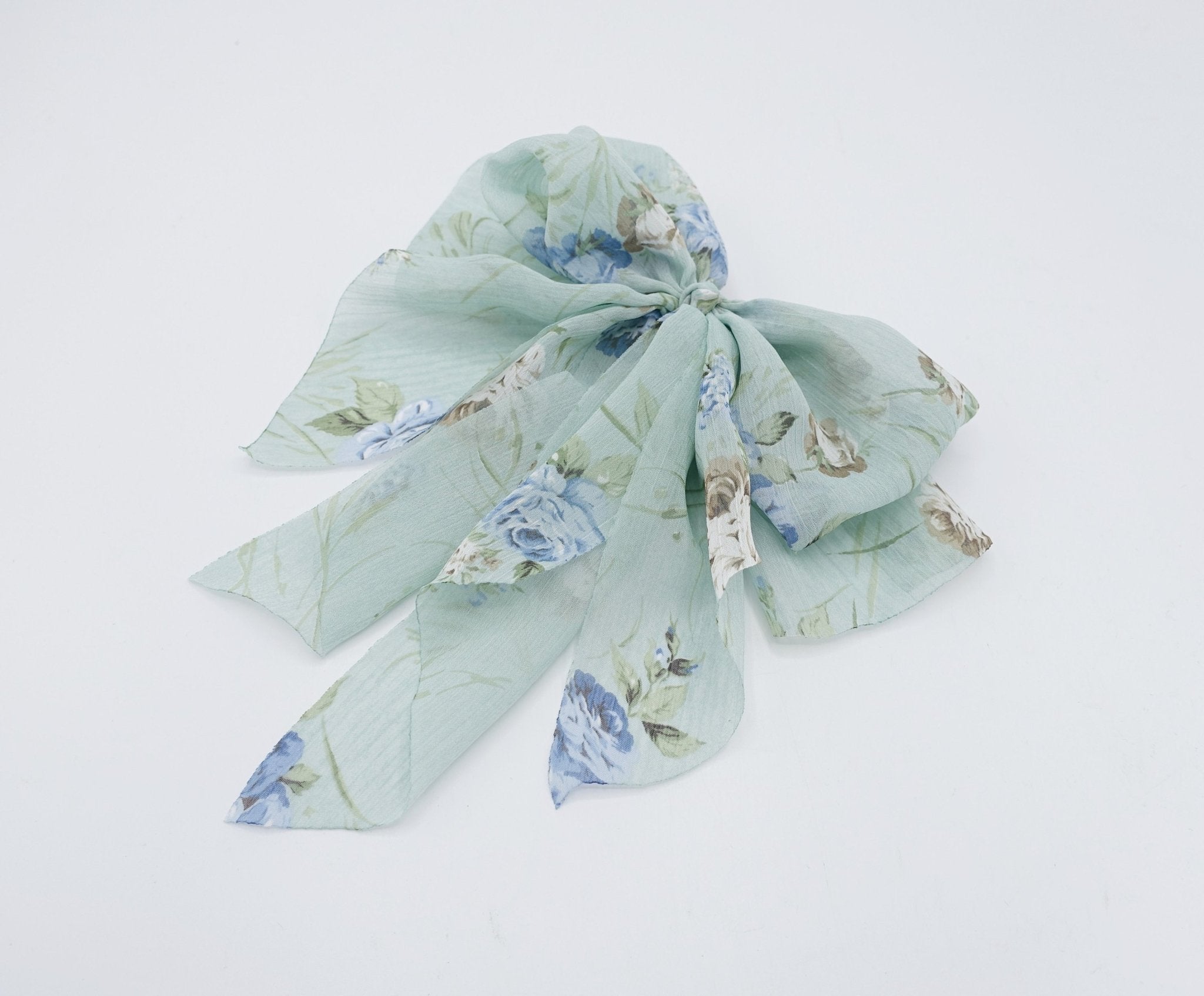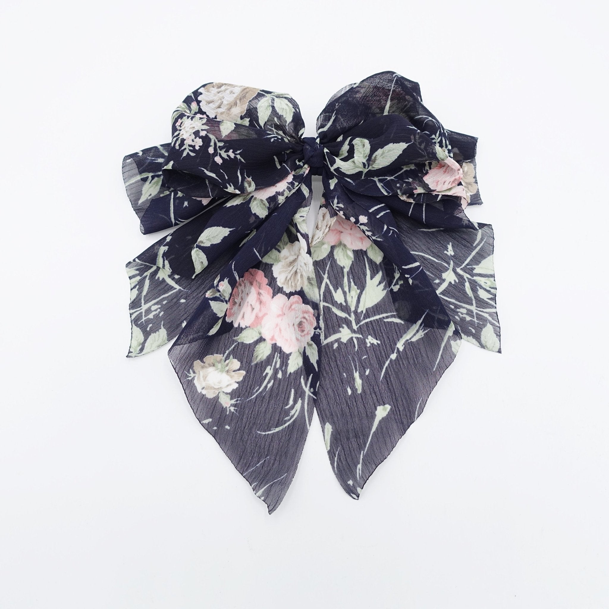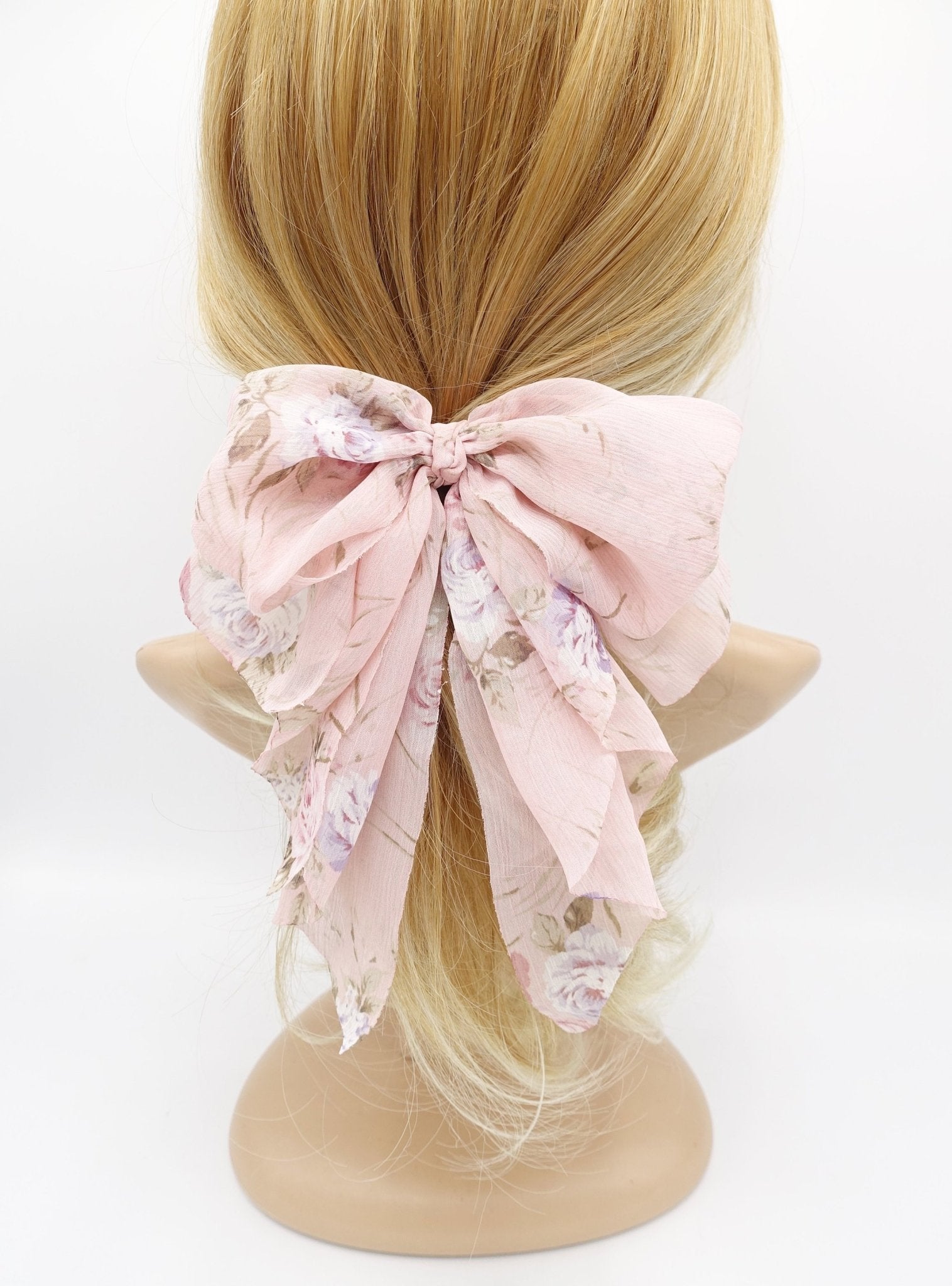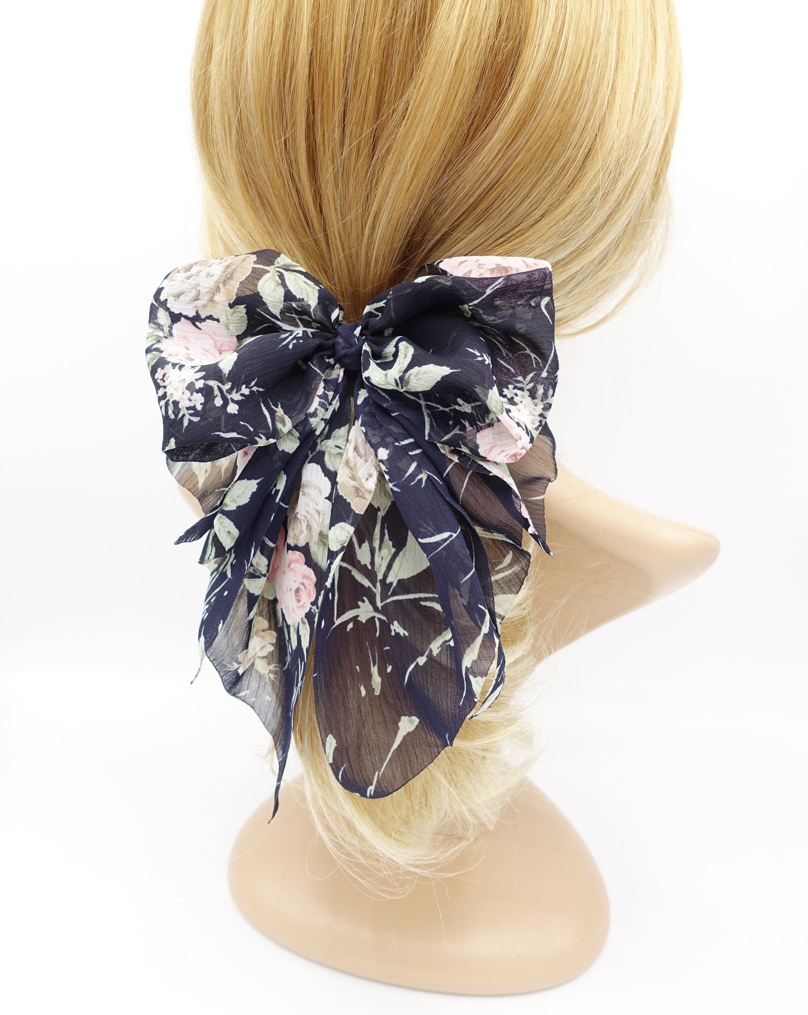 VeryShine chiffon flower print bow droopy floral  layered style bow hair accessory for women