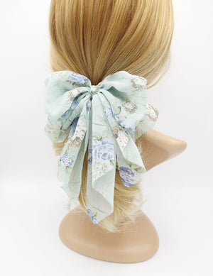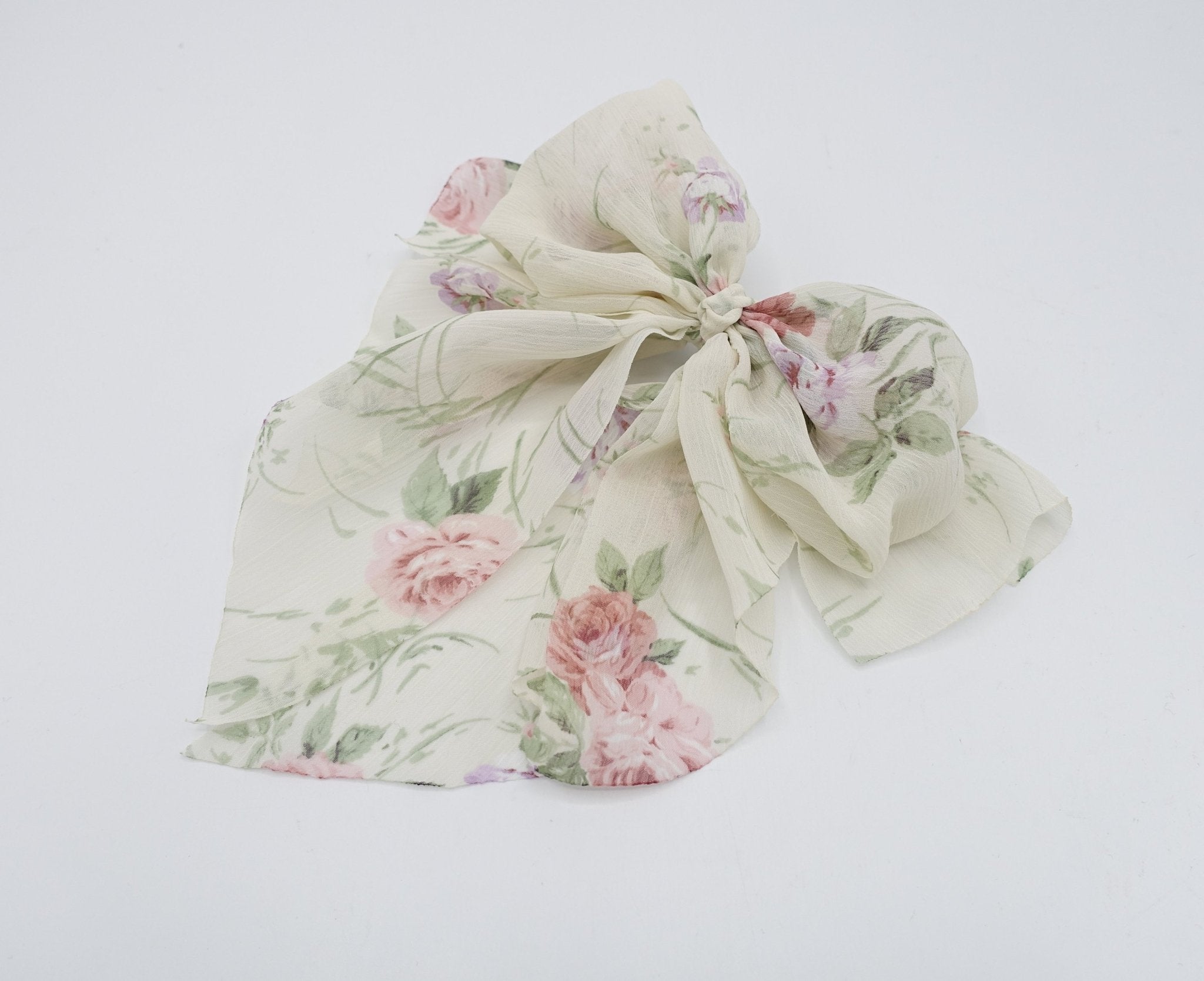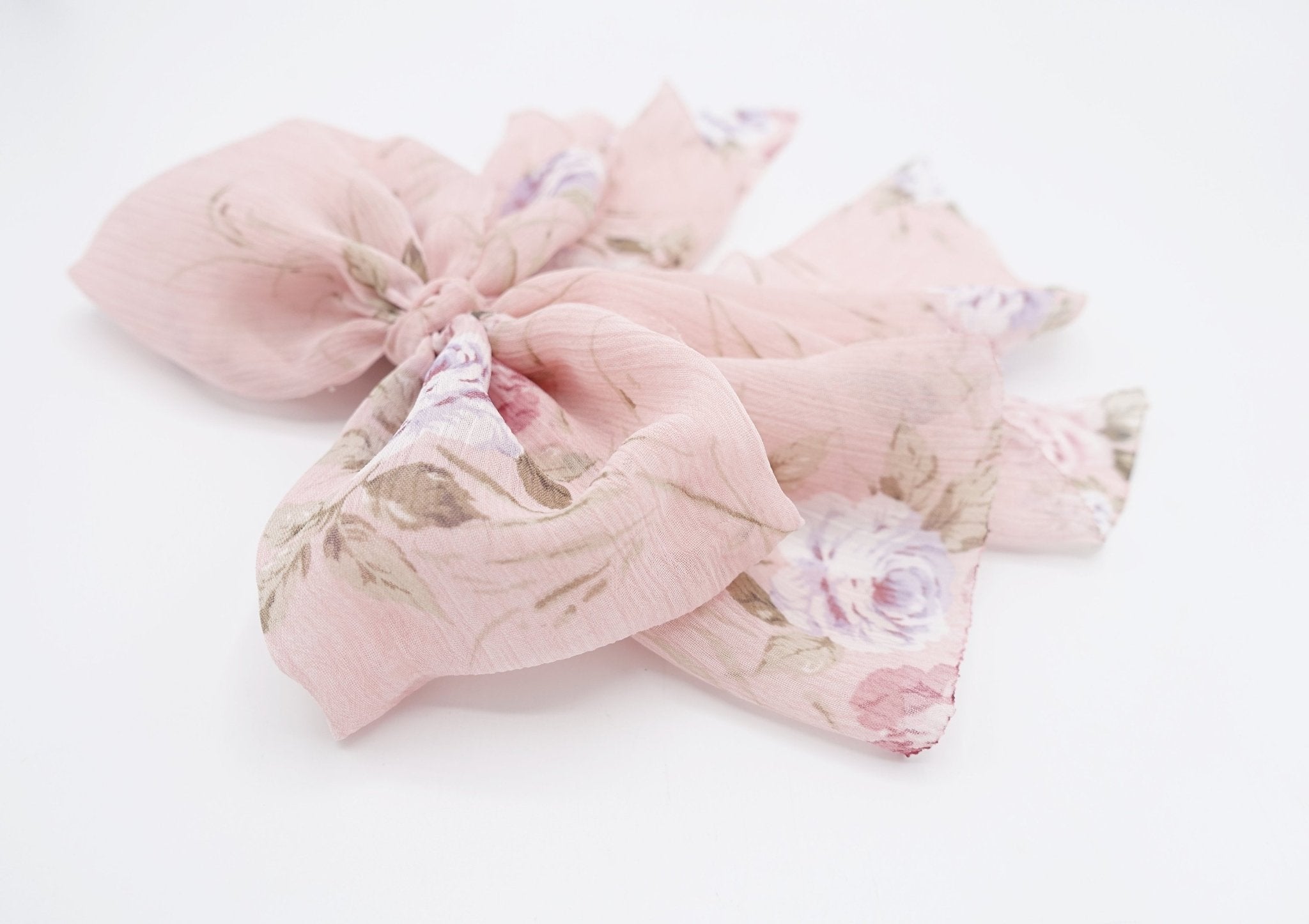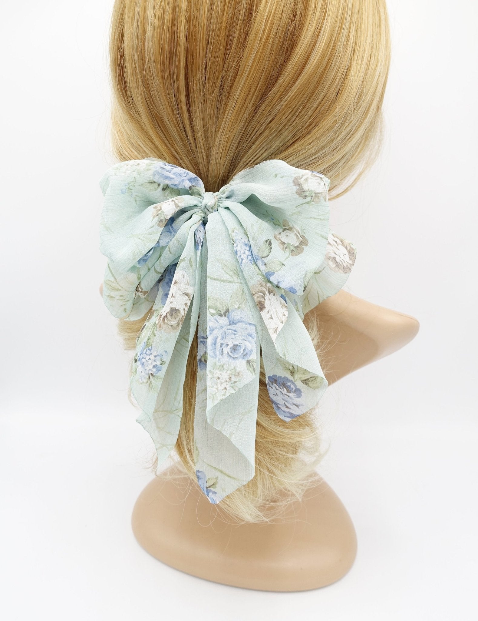 VeryShine chiffon flower print bow droopy floral  layered style bow hair accessory for women
