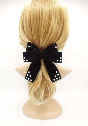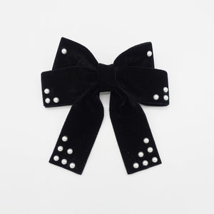 Pearl ball embellished velvet bow french barrette clip accessory for women