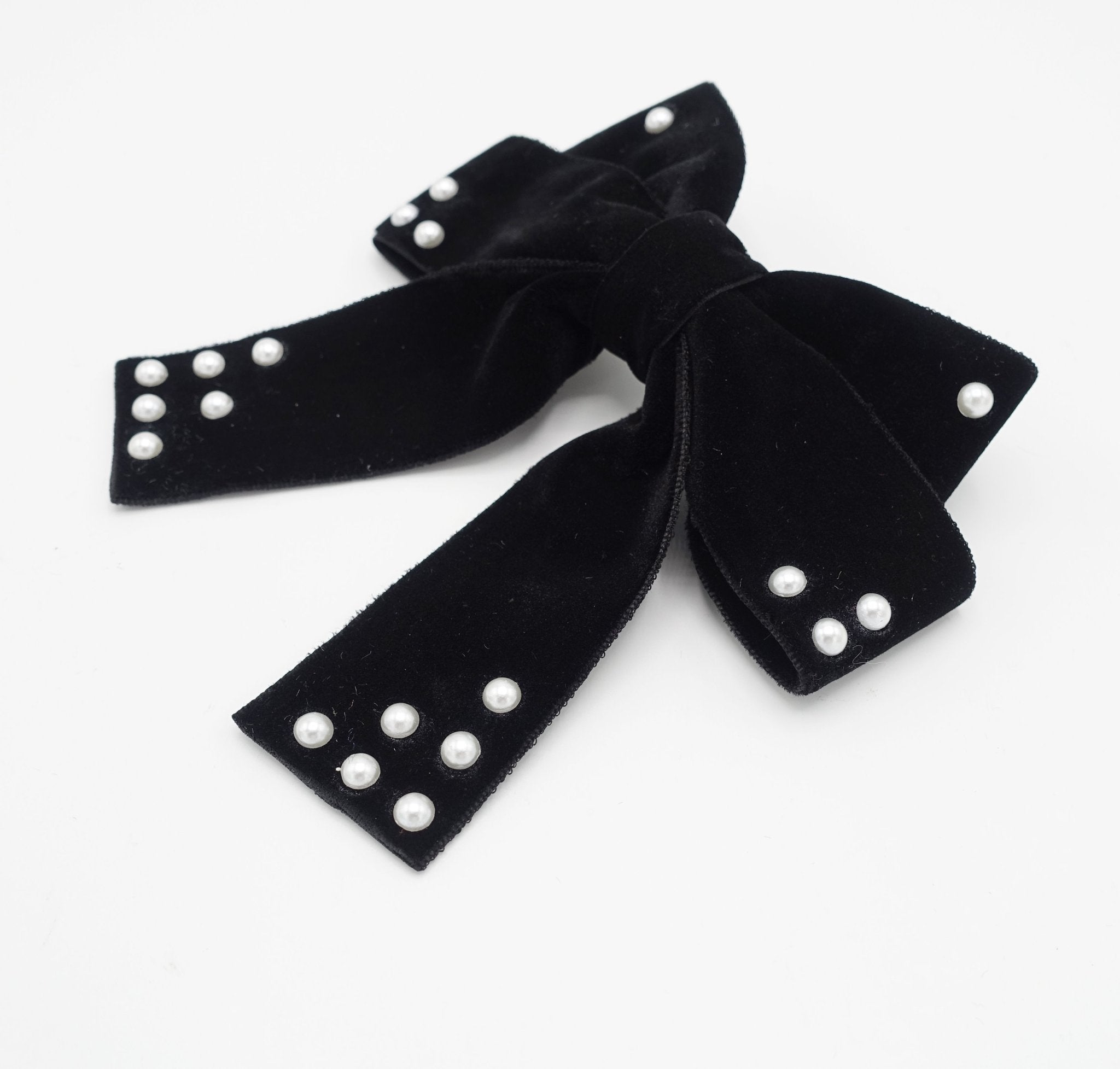 Perlkugelverziertes Samtschleifen-Accessoire für französische Haarspan – veryshine.com