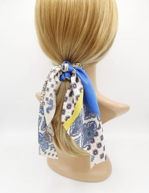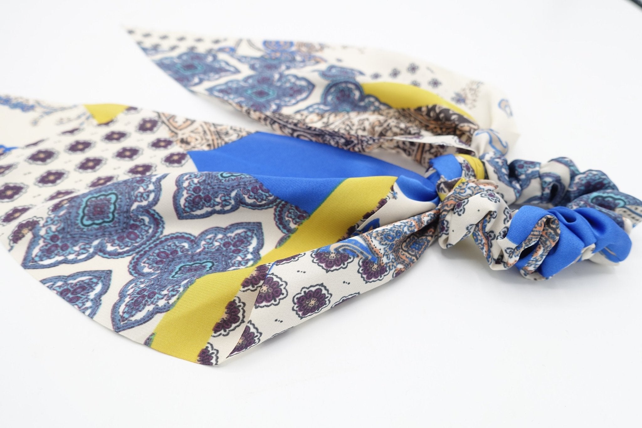 VeryShine scrunchies/hair holder Yellow blue baroque print scarf scrunchies knot hair elastic pretty hair tie accessory for women