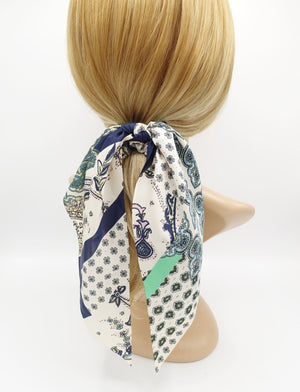 VeryShine scrunchies/hair holder Navy mint baroque print scarf scrunchies knot hair elastic pretty hair tie accessory for women
