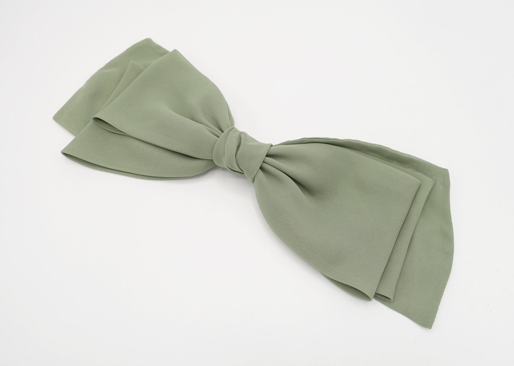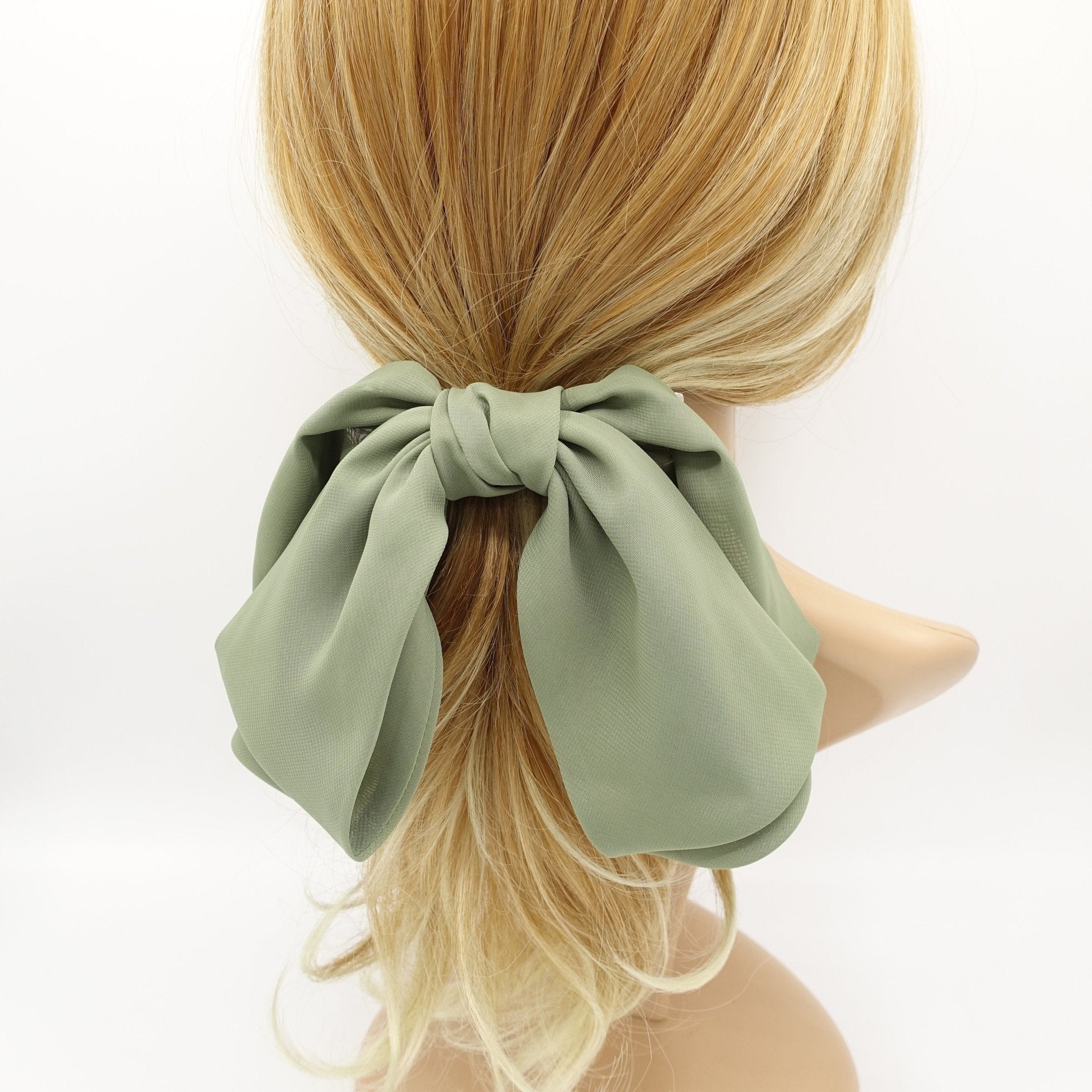 VeryShine claw/banana/barrette Sage green droopy chiffon hair bow double layered Spring Summer hair accessory for women