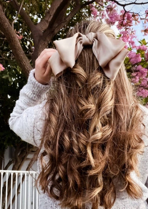 veryshine.com claw/banana/barrette Beige giant satin hair bow droopy stylish women hair accessory