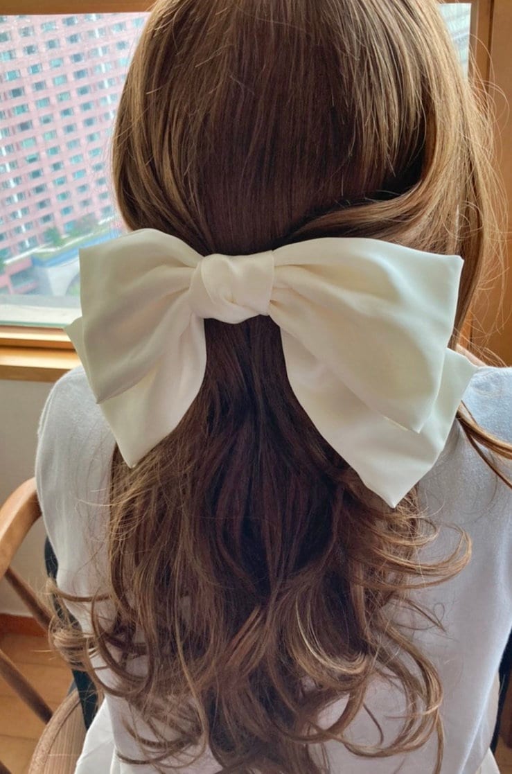 veryshine.com claw/banana/barrette Cream white giant satin hair bow droopy stylish women hair accessory
