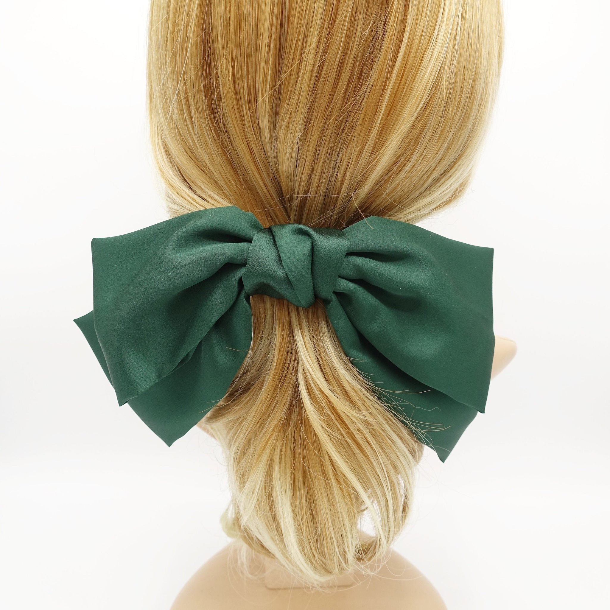 veryshine.com claw/banana/barrette Green giant satin hair bow droopy stylish women hair accessory