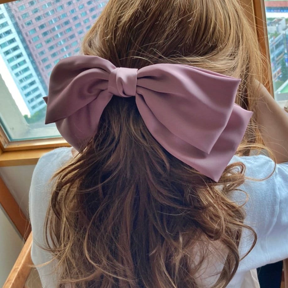 veryshine.com claw/banana/barrette Mauve pink giant satin hair bow droopy stylish women hair accessory