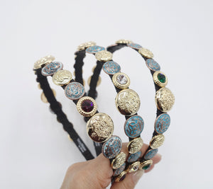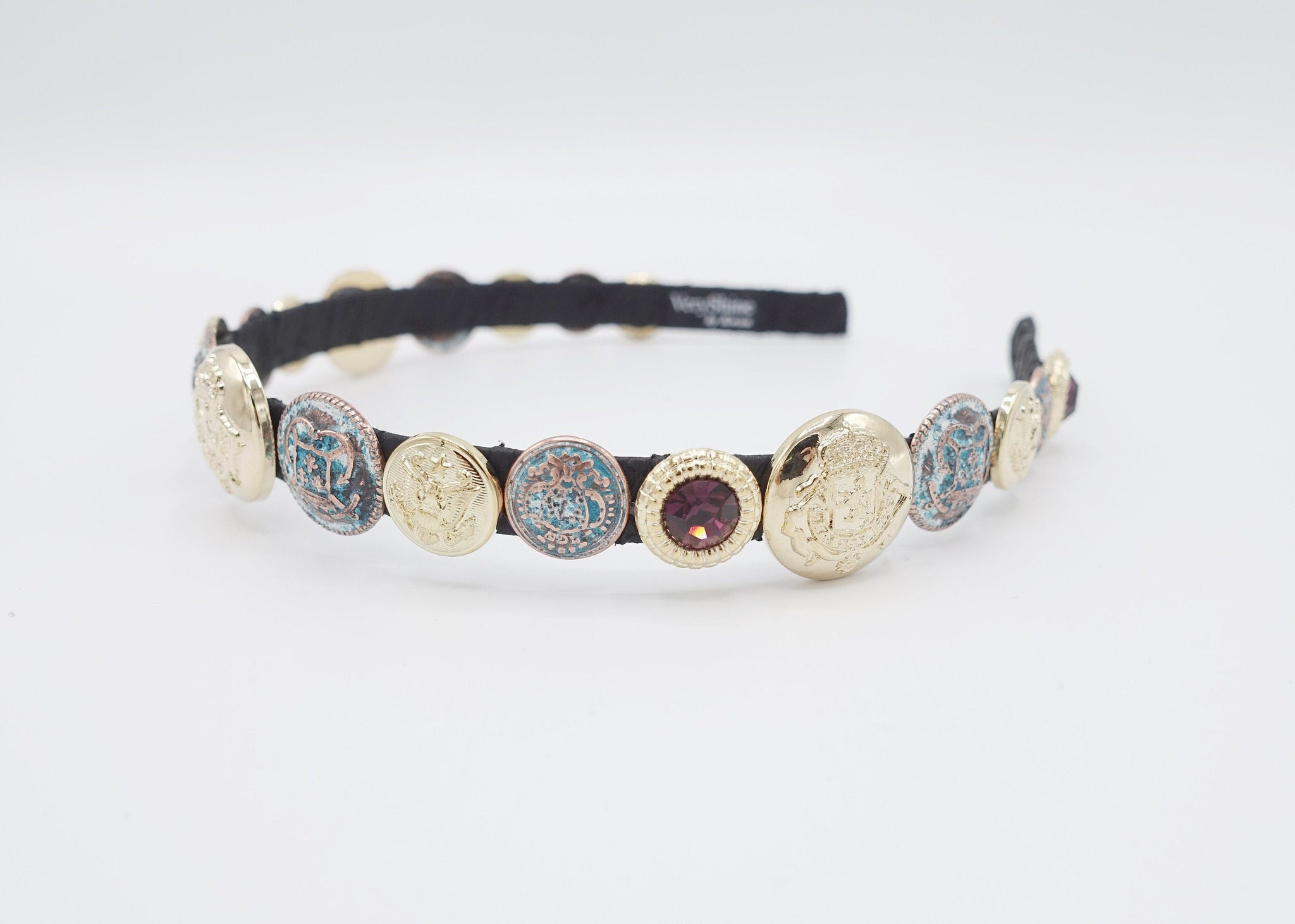 veryshine.com Headband Amethyst golden button rhinestone embellished thin headband luxury style hairband for women