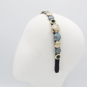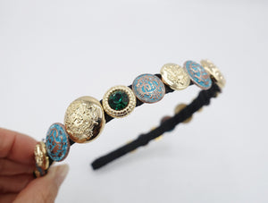 veryshine.com Headband Emerald golden button rhinestone embellished thin headband luxury style hairband for women