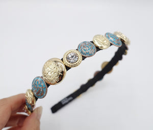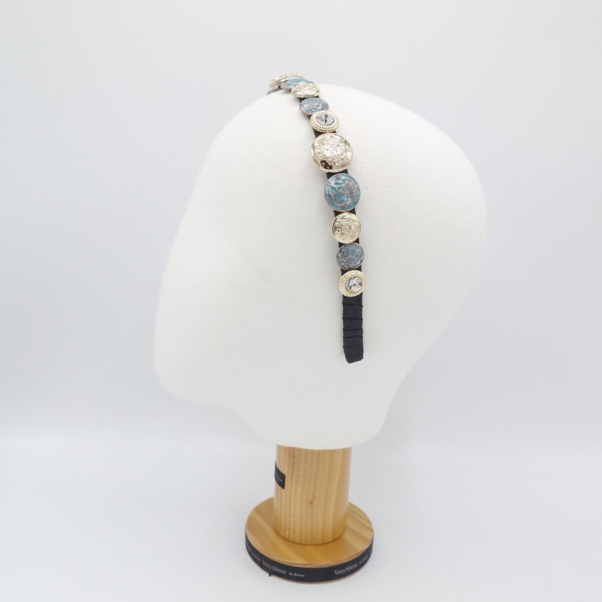 veryshine.com Headband golden button rhinestone embellished thin headband luxury style hairband for women
