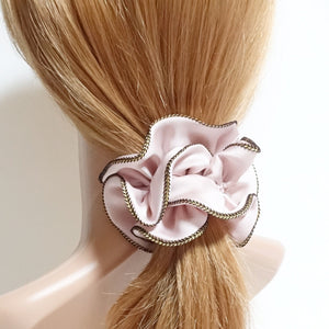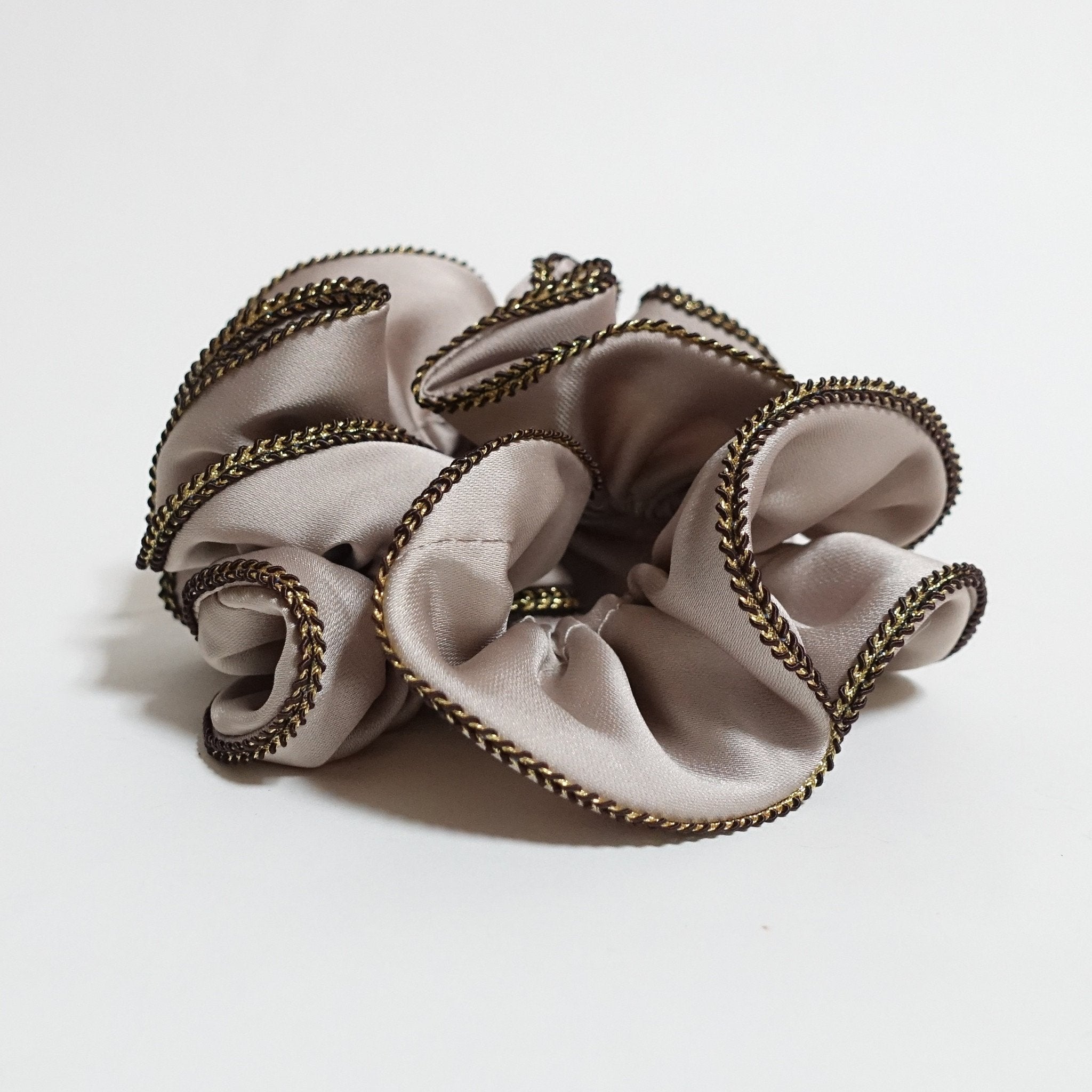 veryshine.com scrunchies/hair holder Beige Golden Thread Trim Satin Hair Elastic Hair Ties Women Hair Scrunchies