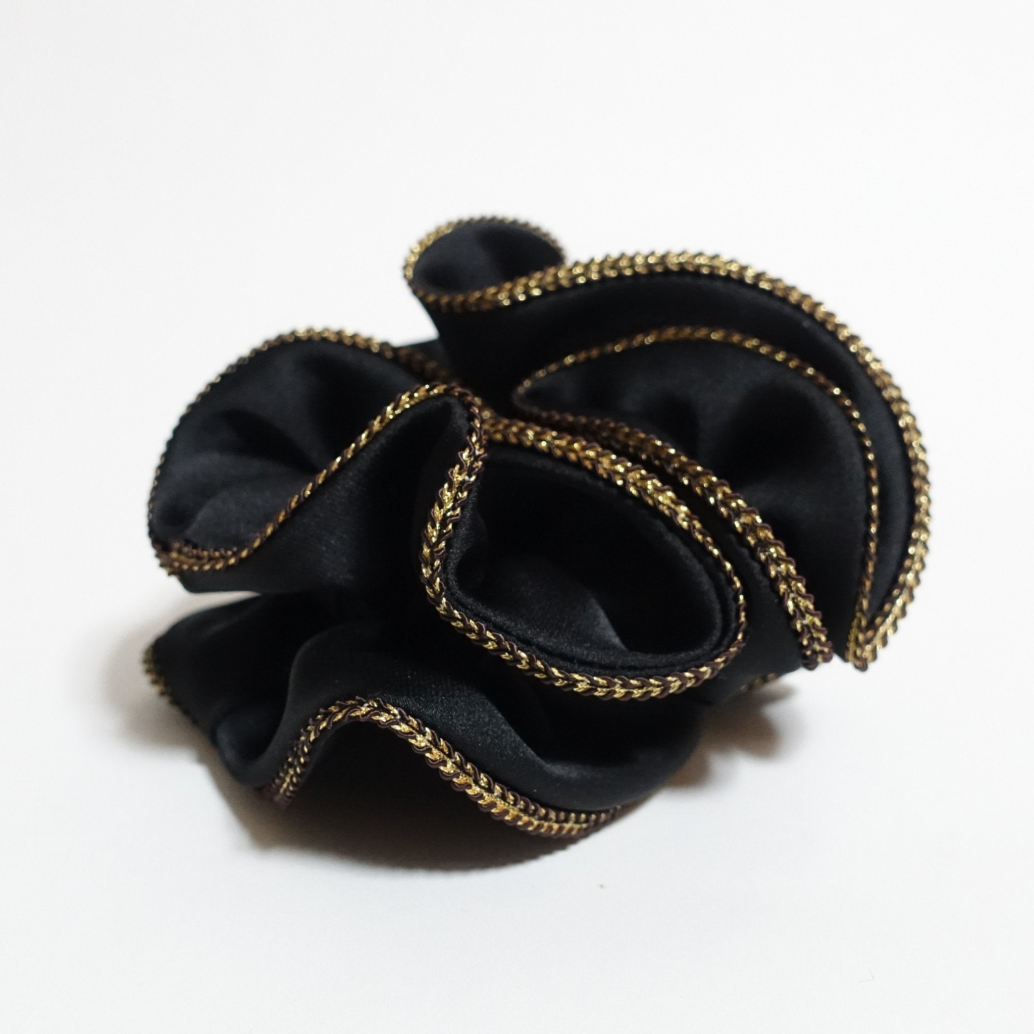 veryshine.com scrunchies/hair holder Black Golden Thread Trim Satin Hair Elastic Hair Ties Women Hair Scrunchies