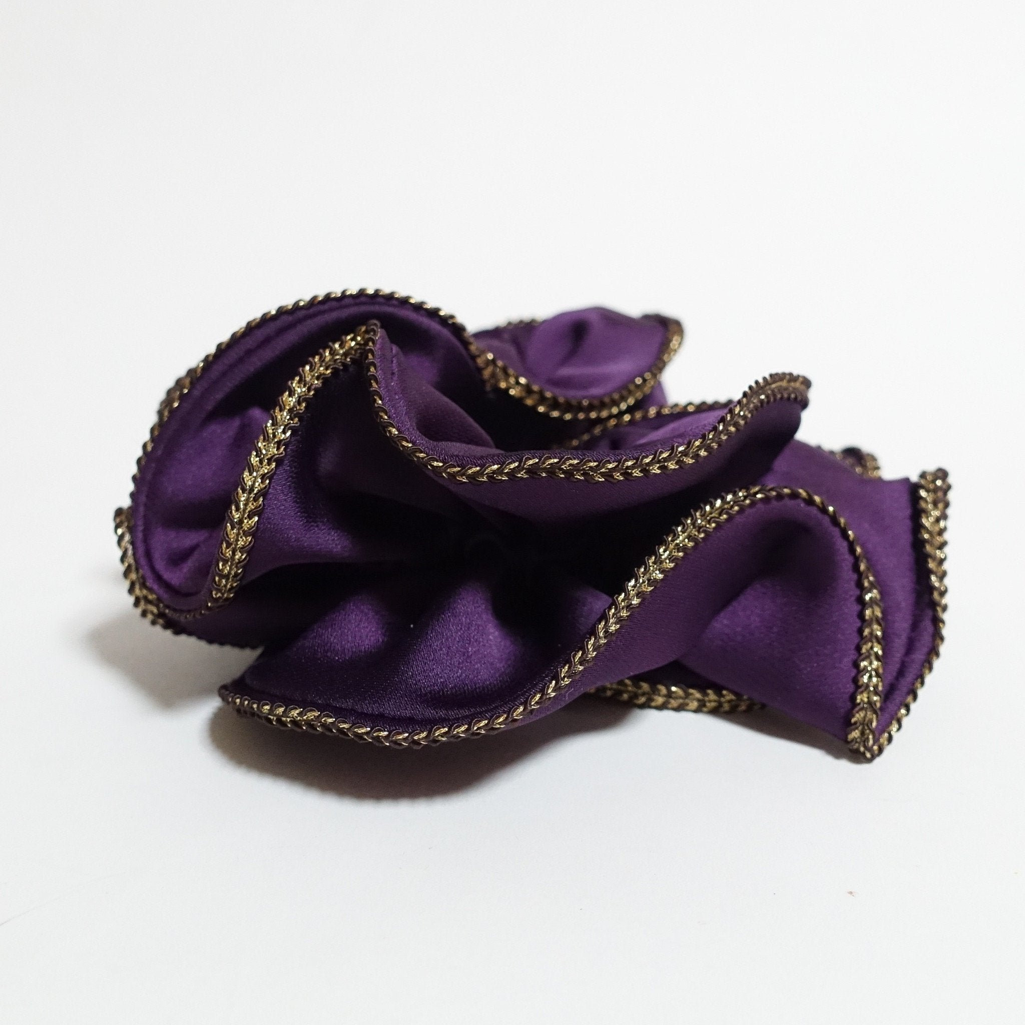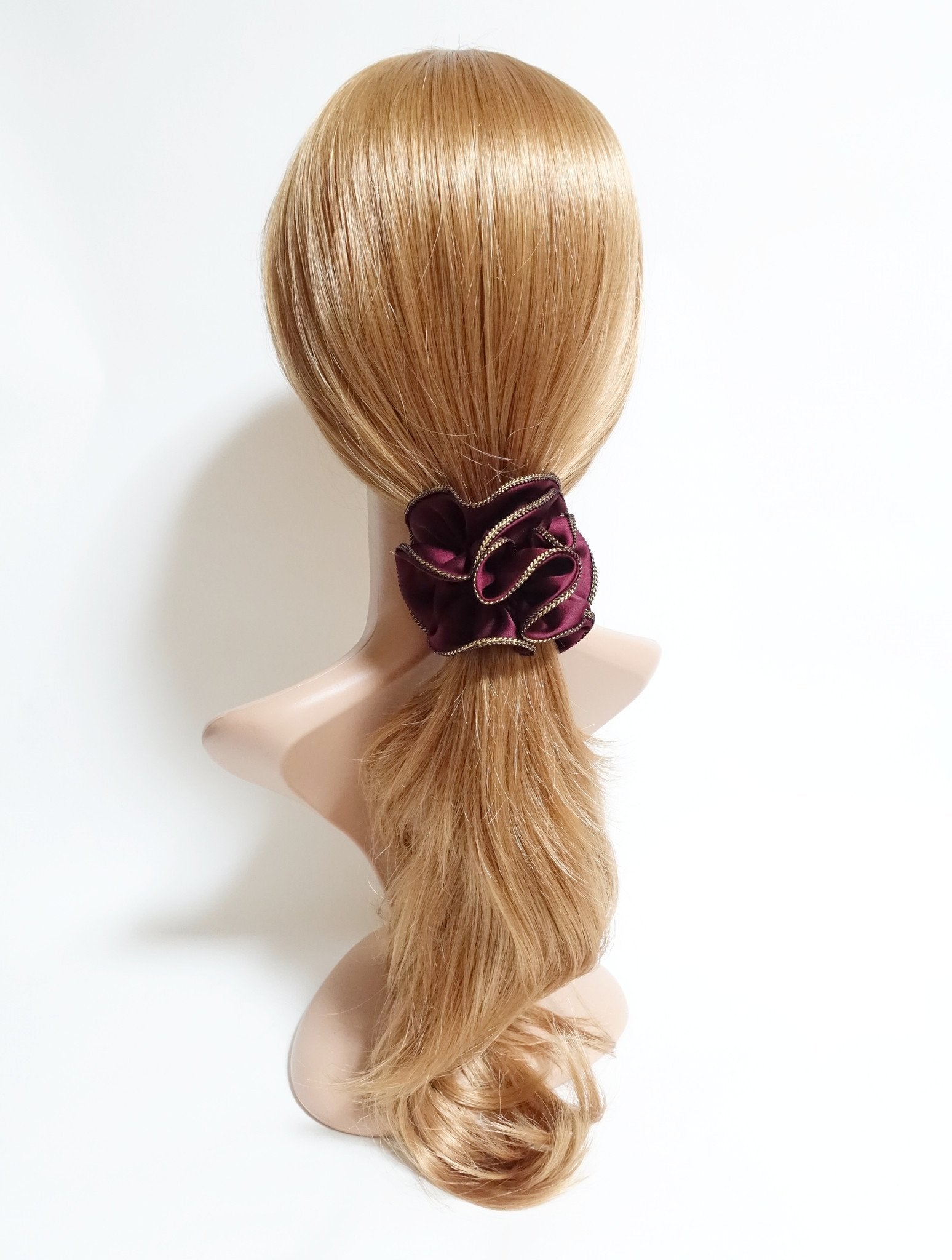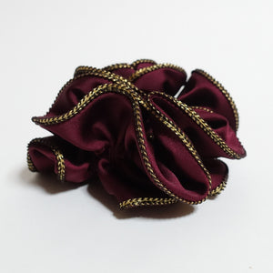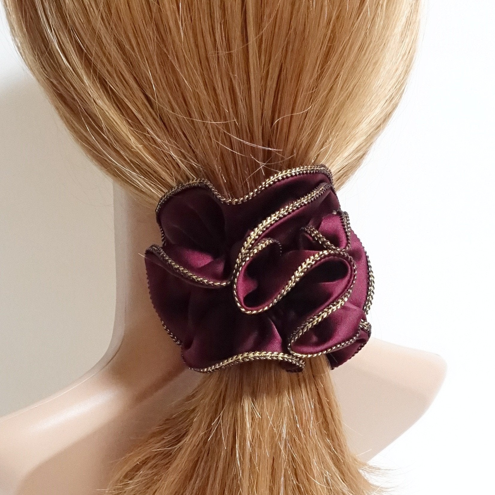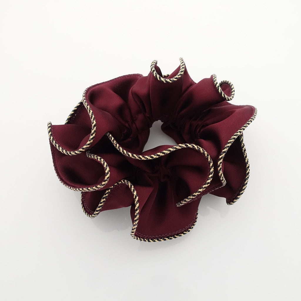 veryshine.com scrunchies/hair holder Burgundy Golden Thread Trim Satin Hair Elastic Hair Ties Women Hair Scrunchies