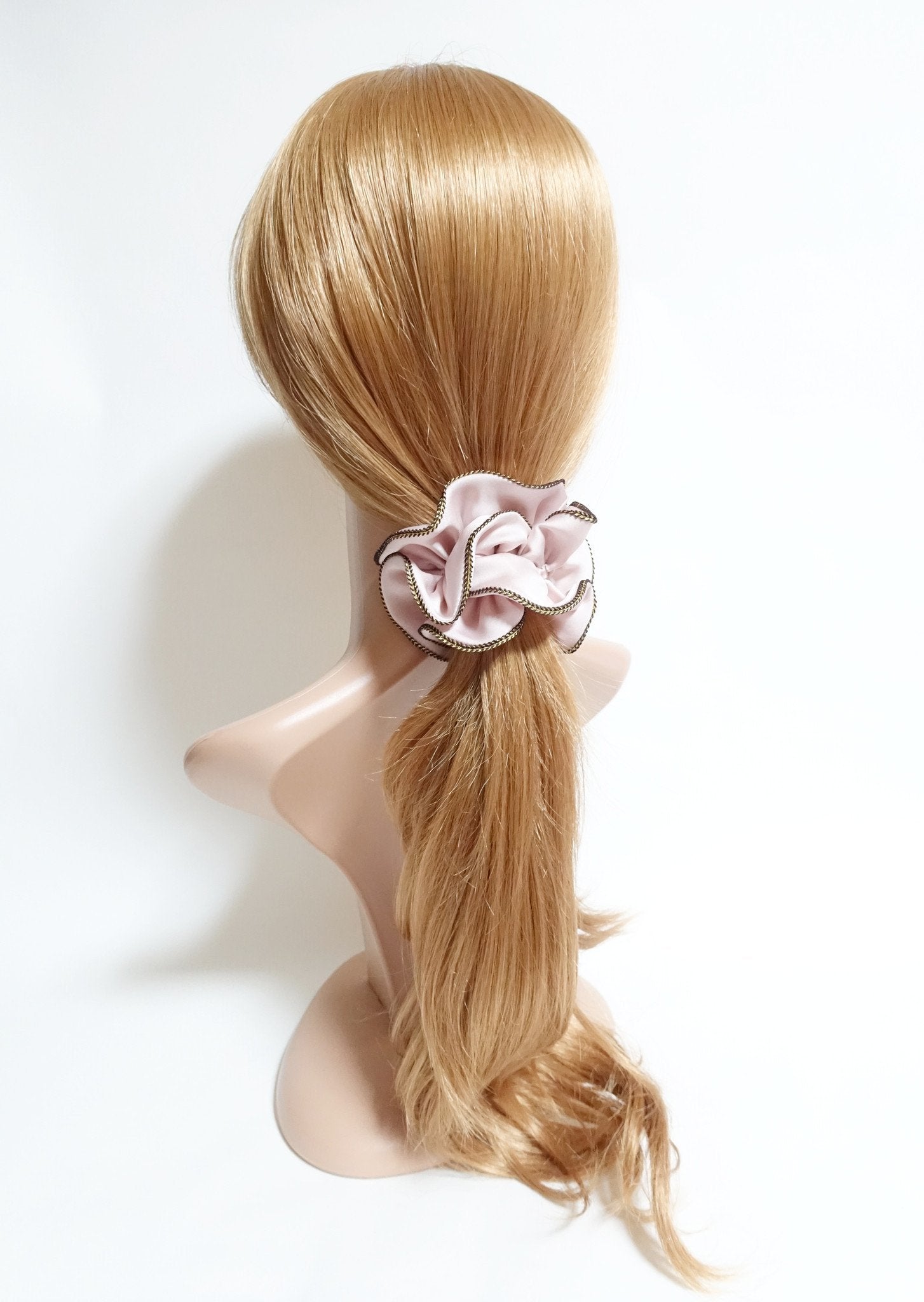 veryshine.com scrunchies/hair holder Baby pink Golden Thread Trim Satin Hair Elastic Hair Ties Women Hair Scrunchies